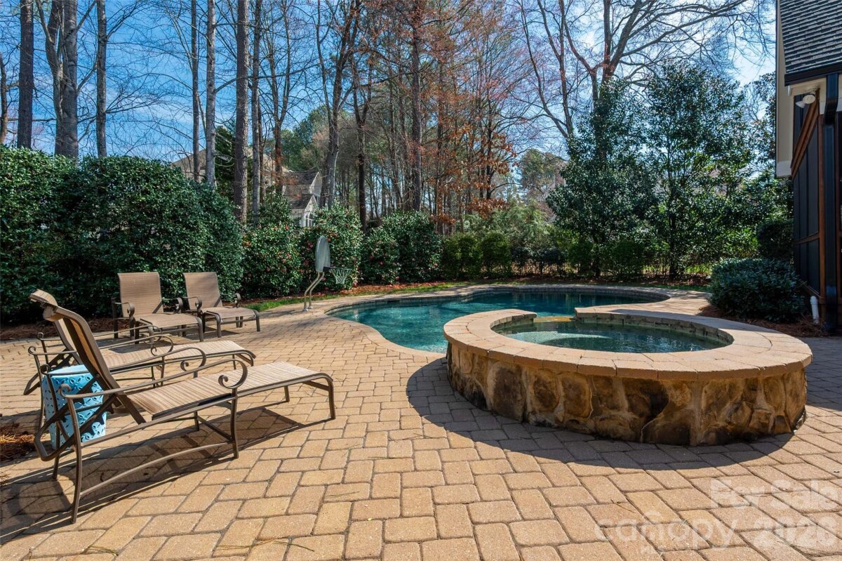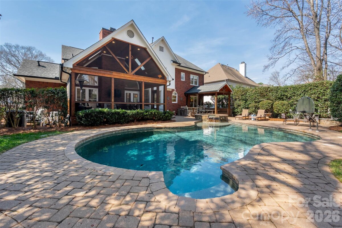 Located in the coveted Ballantyne Country Club community, this beautiful all-brick home sits on a quiet cul-de-sac and offers an open, light-filled floor plan perfect for everyday living and entertaining. The bright, updated kitchen features a large island and flows seamlessly into the vaulted great room with a stunning stone fireplace. Enjoy outdoor living year-round on the vaulted screened porch overlooking the private backyard with a POOL AND HOT TUB! Built in grill and covered area for ping pong or outdoor dining in the rain or hot sun! The main level includes gleaming hardwood floors, a guest bedroom or office, and a full bath. Upstairs you’ll find the primary bedroom with a large walk in closet and updated bathroom, new carpet, and spacious bedrooms, while the third-floor bonus room with a full bath provides the perfect space for a media room, playroom, or private guest suite. Ideally located just minutes from shopping, dining, and entertainment, with easy access to I-485 and the airport. Close to The Ballantyne Bowl, where you can enjoy restaurants, shopping, a brewery, and live music.