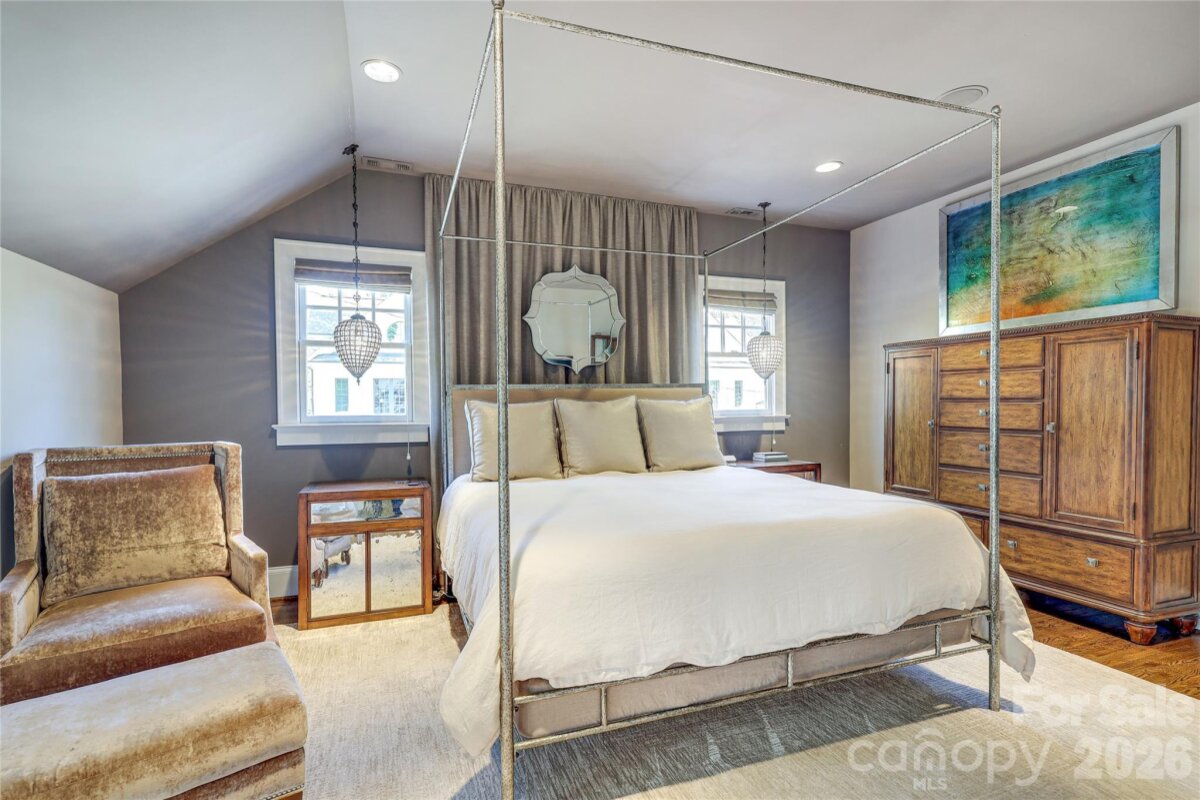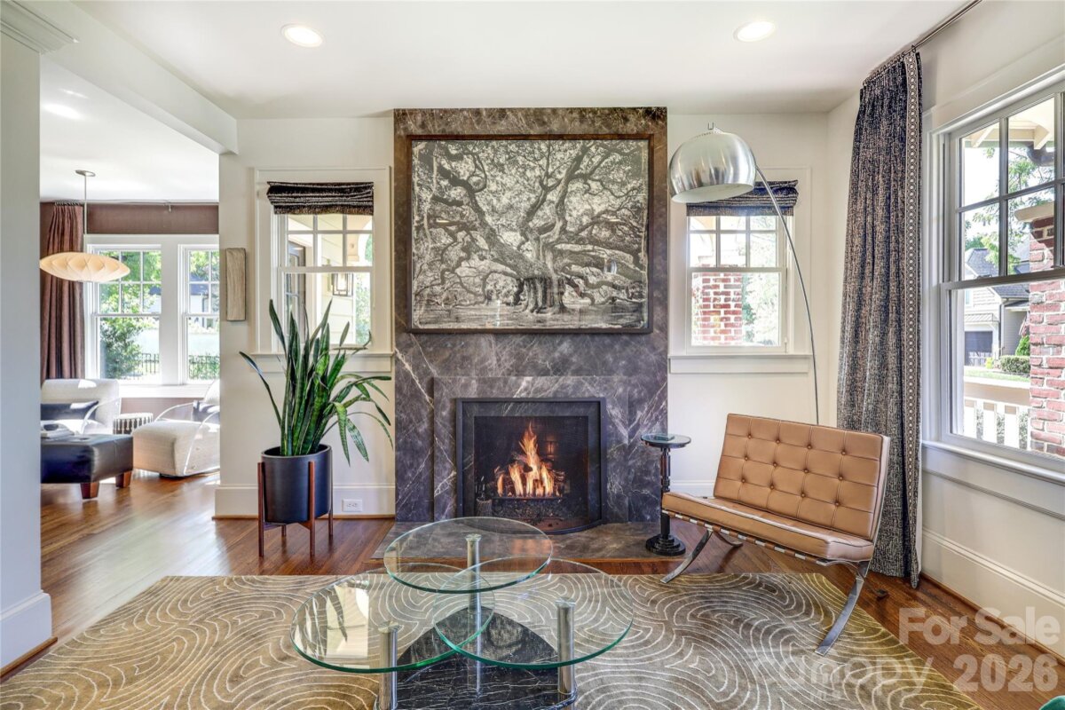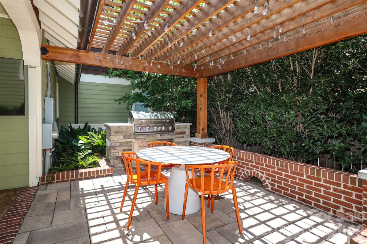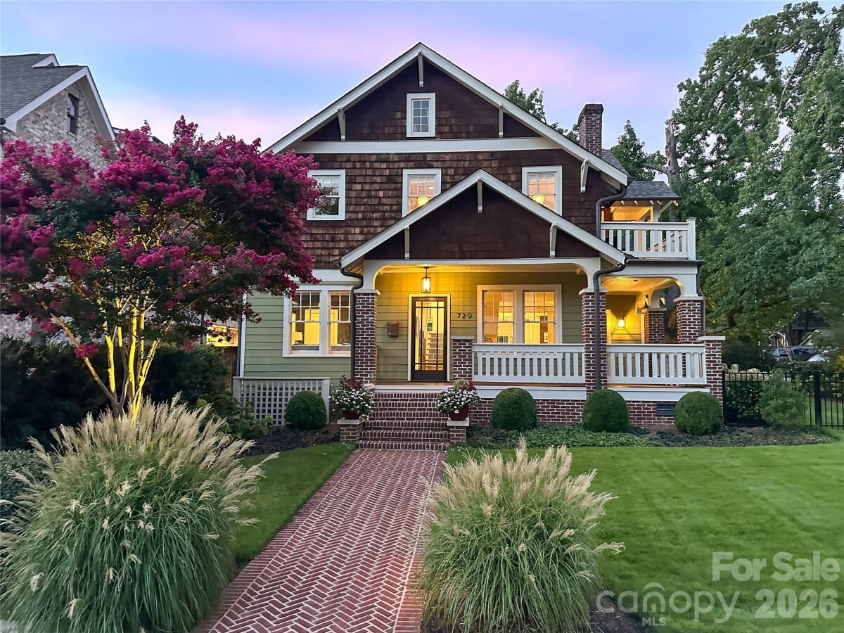 Welcome to this charming updated bungalow in the heart of Dilworth just one block from the historic district—yet free from restrictions—this chic, updated home offers the best of both worlds. With 4 bedrooms and 3 full baths in the main home, plus a full suite above the two-car garage, this home checks all the boxes for flexible, elevated living. The open floor plan is made for entertaining, featuring a large updated kitchen with stainless steel appliances, quartz countertops, oversized commercial refrigerator, Perlick ice machine, 60-bottle wine fridge, and additional beverage fridge—everything you’d expect in a high-end kitchen. Designer touches shine throughout, including a stunning marble fireplace surround, high-end lighting, and wallpaper accents. The main level includes two bedrooms (one currently used as a media room) and a full designer bath. Upstairs, the primary suite offers a private porch, spa-like bath with walk-in shower, and dual walk-in closets. A secondary bedroom, additional full bath, upstairs laundry, and a flexible open loft complete the upper level. Not to be missed is the incredible outdoor living space, designed and built to capture the best of Charlotte living. The fully fenced backyard features a built-in Bull gas grill and custom island (added in 2024), plus front, side, and rear porches—perfect for relaxing or entertaining. Irrigation and pristine landscaping add to the appeal. The bonus suite above the garage offers a loft-style layout with full bath, oversized glass shower, kitchenette, and luxury finishes. The space is ideal as a guest suite, office, or rental. On the lower level of the garage, a separate office/gym space with private entrance adds even more flexibility. The oversized garage fits two vehicles, including large SUVs, with ample built-in storage. Additional features include two driveway spaces, generous street parking on Lennox and Brookside, substantial easily accessible attic storage, and multi-zone whole-home surround sound used daily and for entertaining. Located on a quiet dead-end street just minutes from South End, Uptown, and East Blvd shops and dining, this home is right in the middle of it all. With modern conveniences, timeless charm, and rare versatility, this is the Dilworth dream home you’ve been waiting for.