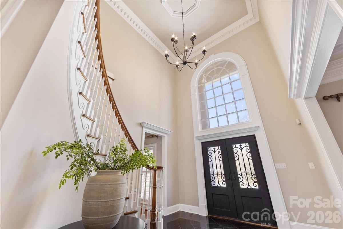 Nestled in the desirable Glynmoor Lakes section of Piper Glen, this expansive home sits on a beautifully landscaped .84-acre lot backing to the lake, offering both privacy and serene views. A circular driveway and three-car garage provide impressive curb appeal and convenience. The fenced backyard is perfect for outdoor enjoyment, while the sunroom provides a peaceful space to relax and take in the natural surroundings. Inside, abundant natural light fills the home, especially in the kitchen, where numerous windows and a spacious island with ample counter space make it ideal for cooking and gathering. Elegant details such as intricate crown molding enhance the home’s timeless character. The main-level primary suite offers comfort and accessibility, while four spacious bedrooms upstairs, all with hardwood flooring, also feature direct access to full bathrooms. Flexible living space throughout, with a large bonus room, media space and home office. Freshly painted interior with new carpet upstairs, this move-in ready home is designed for both everyday living and entertaining.