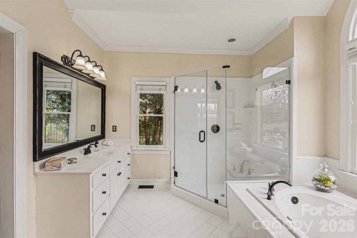 Welcome to this beautifully updated 4-bedroom, 3.5-bath home located in the prestigious TPC Piper Glen golf community. Situated on the third fairway, this home offers breathtaking sunrise views and an exceptional combination of luxury and comfort. This is an elegant, light-filled home featuring spacious living areas. The gourmet kitchen offers sleek quartz countertops, stainless steel appliances, and a comfortable breakfast area overlooking the lush green back yard and fairway. The primary suite on the main level offers a private retreat with spa-like comfort, while additional bedrooms and baths upstairs, along with a spacious bonus room provide ample space and privacy for family or guests. Enjoy outdoor living at its finest on the inviting patio with firepit, perfect for entertaining or relaxing under the stars. The invisible fence adds convenience for pet owners, and the tranquil setting enhances the sense of privacy and peace. This home perfectly blends timeless elegance with modern updates, all within one of Charlotte’s premier golf course communities.