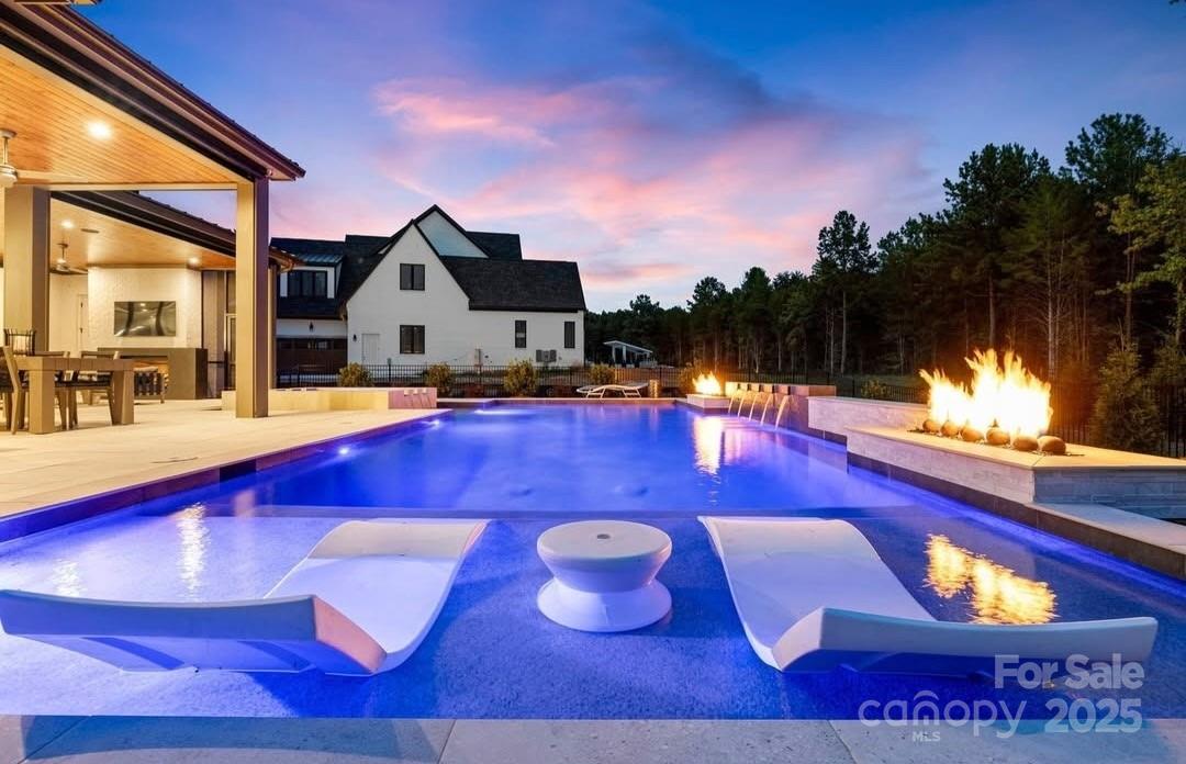 Located in Davidson Farms – Stunning Modern Home by AR Homes. This exquisite residence boasts spectacular features throughout. The primary bedroom, guest suite, and a dedicated office/den are conveniently located on the main floor, alongside a large open kitchen that includes a pass-through window to the covered porch. The great room and bar/wine room create an inviting space perfect for entertaining.Enjoy seamless indoor-outdoor living with pocketing doors leading to a covered porch equipped with remote retractable screens, a cozy fireplace, and an outdoor kitchen. A luxurious heated salt-water pool and spa add to the outdoor oasis, complemented by a 676 sq. ft. putting green featuring five cups.The kitchen is a chef's dream, featuring custom cabinetry, quartz countertops, a professional 48†range with dual ovens and six burners, plus a 48" built-in refrigerator. The spacious walk-in scullery includes a sink, dishwasher, and an additional refrigerator for ample storage.Retreat to the primary bath, which offers an oversized wet room, quartz counters, and a freestanding tub. The large, bright foyer with a floating staircase invites you into the home.Upstairs, you'll find a bonus room, club room with a wet bar, and a media room, along with three additional bedrooms, three full baths, and a half bath. There's also flex space ideal for an exercise area or playroom or walk-in conditioned storage space. Additional features include a upgraded/luxury lighting throughout, sealed crawlspace and a three-car side-load garage, making this home both practical and luxurious. Feature sheet in attachments. ***Professional photos will be uploaded on 11/7
