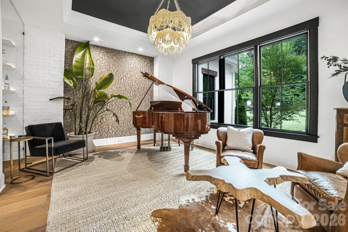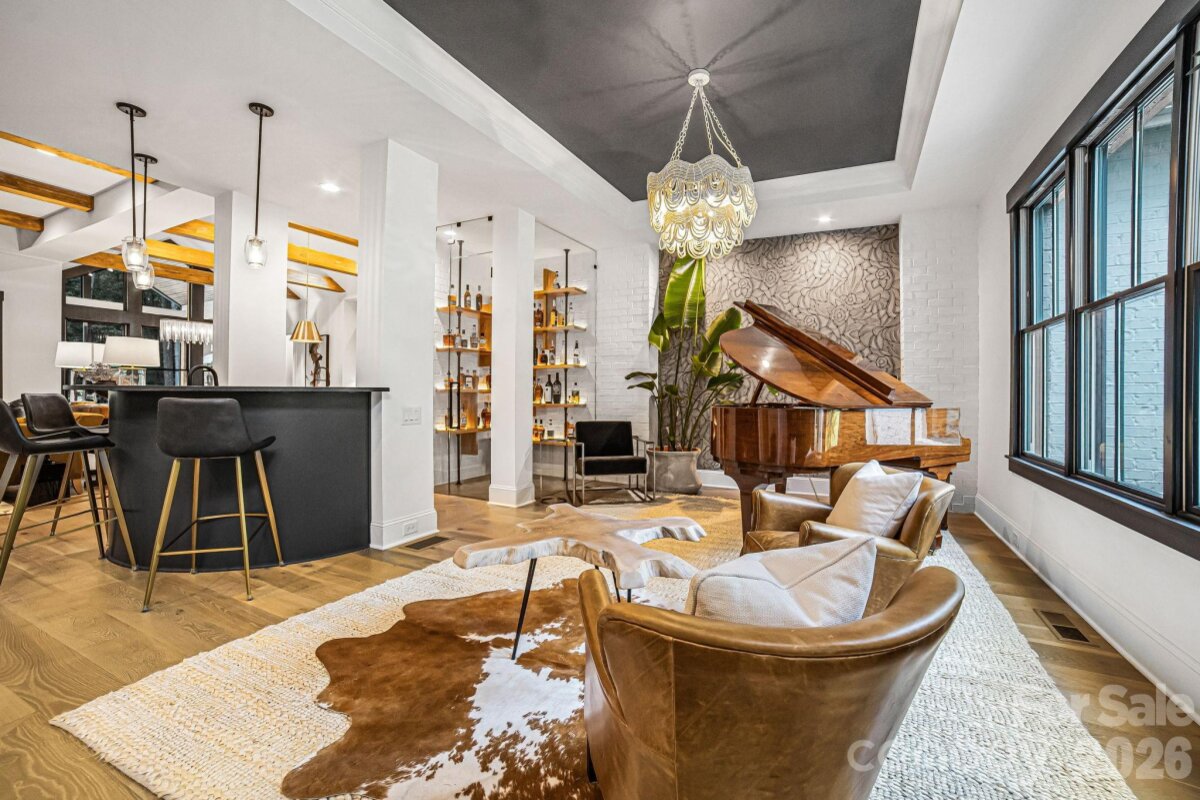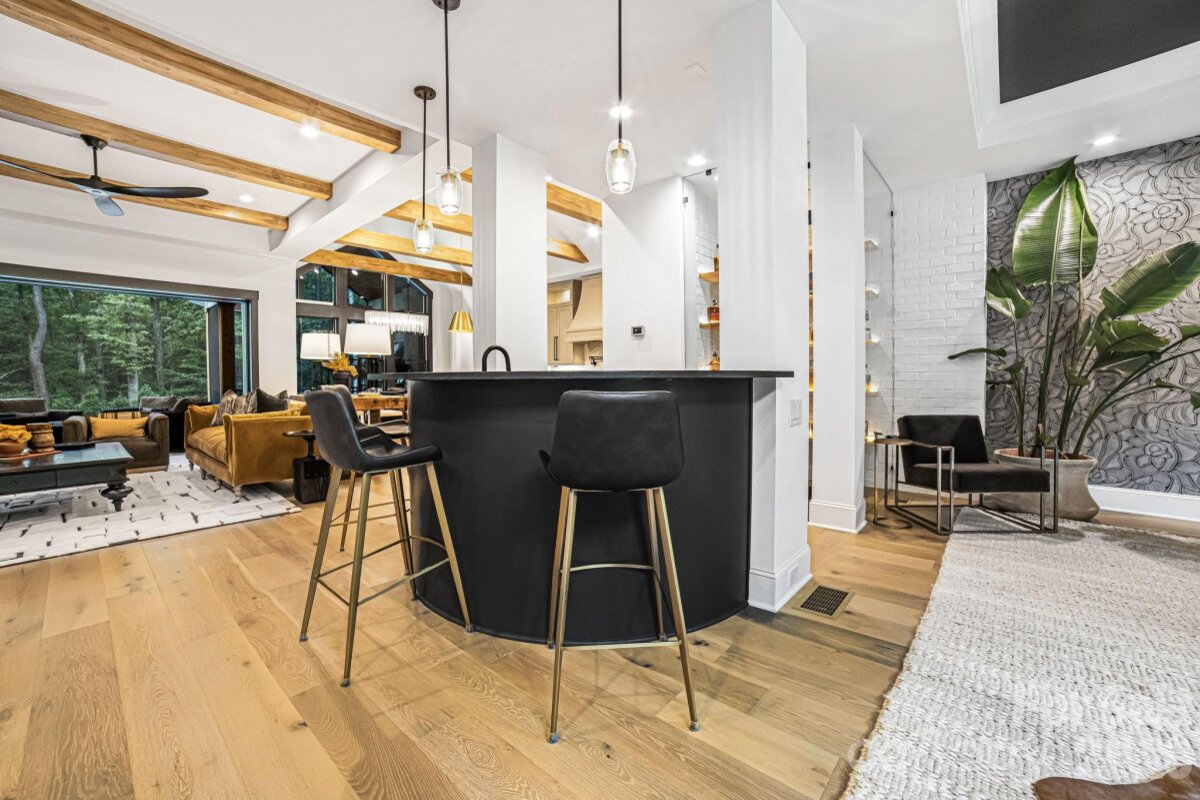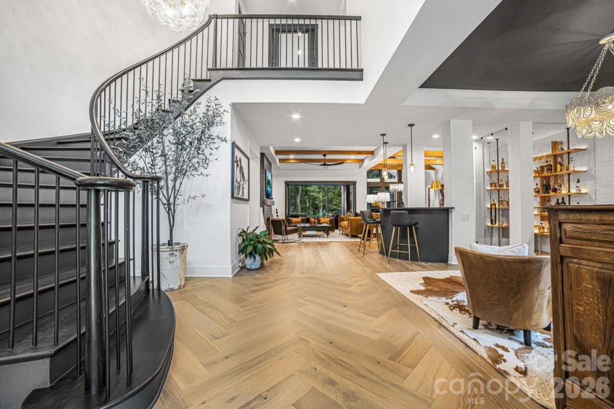 Experience unmatched privacy and modern luxury in this fully custom 2023 estate, perfectly situated on over 3.4 acres in Maple Grove, a boutique six-lot subdivision. From the moment you arrive, the gated entry with brick columns and sweeping front lawn framed by manicured landscaping create a commanding first impression. The home’s thoughtful design blends sophistication and comfort with soaring vaulted and beamed ceilings, custom millwork, and designer lighting throughout. The chef’s kitchen showcases natural Vancouver Quartzite with a double-edge island, 6-burner range with griddle and hearth oven, pot filler, hidden walk-in pantry and outlets, complemented by a separate scullery with a full second kitchen, Italian handmade backsplash tile, and abundant storage. Pocket doors add privacy to multiple spaces including the library/media room and guest suites. Retreat to the serene primary suite with spa-inspired bath, custom closets, and marble finishes. Additional highlights include glazed Italian porcelain tile baths, custom built-ins, herringbone wood floors, and three Monogram wine/beverage fridges across the bar, library/media room, and outdoor kitchen. Outdoor living takes center stage with a resort-style pool and spa, expansive veranda with retractable screen, fire pit, and an inspired backyard retreat featuring a flowing river stream, tiered putting green, and dramatic landscape lighting. Extensive drainage improvements further enhance the property’s functionality and value. Backing to Fisher Farm Park and the Davidson Greenway, this private estate combines natural beauty, luxury finishes, and exceptional craftsmanship in one extraordinary package!
