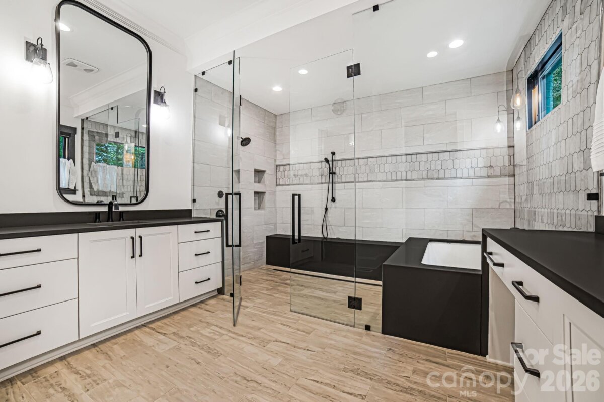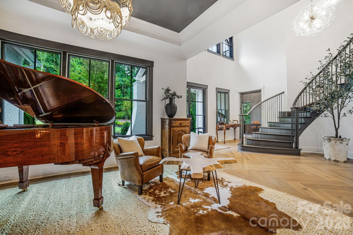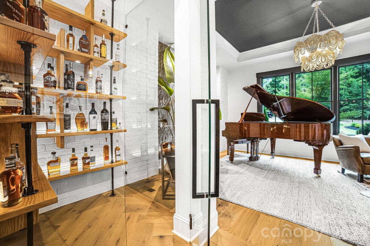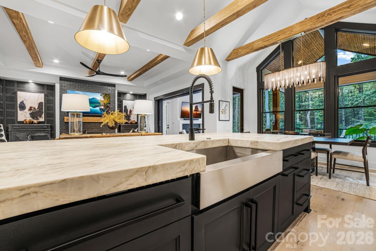 Experience unmatched privacy and modern luxury in this fully custom 2023 estate, perfectly situated on over 3.4 acres in Maple Grove, a boutique six-lot subdivision. From the moment you arrive, the gated entry with brick columns and sweeping front lawn framed by manicured landscaping create a commanding first impression. The home’s thoughtful design blends sophistication and comfort with soaring vaulted and beamed ceilings, custom millwork, and designer lighting throughout. The chef’s kitchen showcases natural Vancouver Quartzite with a double-edge island, 6-burner range with griddle and hearth oven, pot filler, hidden walk-in pantry and outlets, complemented by a separate scullery with a full second kitchen, Italian handmade backsplash tile, and abundant storage. Pocket doors add privacy to multiple spaces including the library/media room and guest suites. Retreat to the serene primary suite with spa-inspired bath, custom closets, and marble finishes. Additional highlights include glazed Italian porcelain tile baths, custom built-ins, herringbone wood floors, and three Monogram wine/beverage fridges across the bar, library/media room, and outdoor kitchen. Outdoor living takes center stage with a resort-style pool and spa, expansive veranda with retractable screen, fire pit, and an inspired backyard retreat featuring a flowing river stream, tiered putting green, and dramatic landscape lighting. Extensive drainage improvements further enhance the property’s functionality and value. Backing to Fisher Farm Park and the Davidson Greenway, this private estate combines natural beauty, luxury finishes, and exceptional craftsmanship in one extraordinary package!