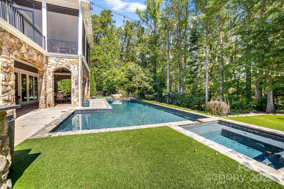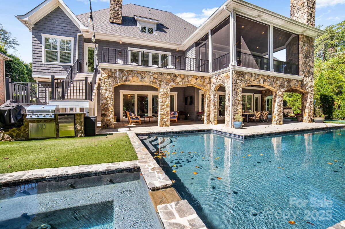 Resort-Style Luxury Estate Backing to Protected Greenspace Discover a rare blend of timeless craftsmanship and modern luxury in this cedar shake and stone estate. Designed for both everyday living and unforgettable entertaining, the home offers a true resort lifestyle. Outdoors, enjoy multiple living spaces—screened porch, balcony, patios, and a spectacular pool with diving rock, spa hot tub, and dedicated pool bath. Entertain with a full outdoor kitchen, gas-start fireplace, fire pit, half-court basketball, turf putting green, and grassy play yard. Inside, soaring ceilings, elegant moldings, hardwoods, and smart-home features set the stage. The chef’s kitchen shines with dual islands, Thermador appliances, walk-in pantry, and breakfast nook. The coffered-ceiling living room, keeping room, and screened porch make gatherings seamless. The main-level owner’s suite is a retreat with vaulted ceilings, fireplace, porch access, and spa-inspired bath featuring heated marble floors, freestanding tub, oversized shower, and custom closets. Upstairs offers a study loft, three bedrooms with ensuite/shared baths, and unique bonus spaces. The finished lower level boasts a wine cellar, custom bar, 120-inch home theater, office, exercise room, and guest suite with pool access. This extraordinary estate delivers luxury, recreation, and nature—right at home.