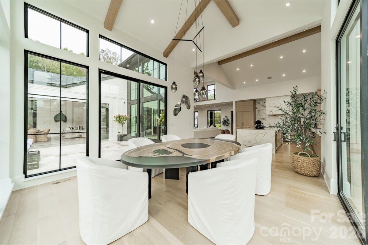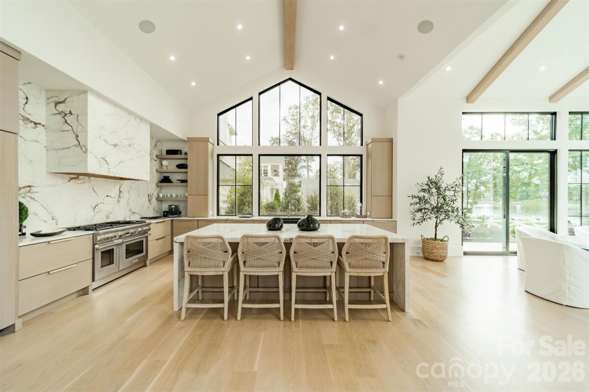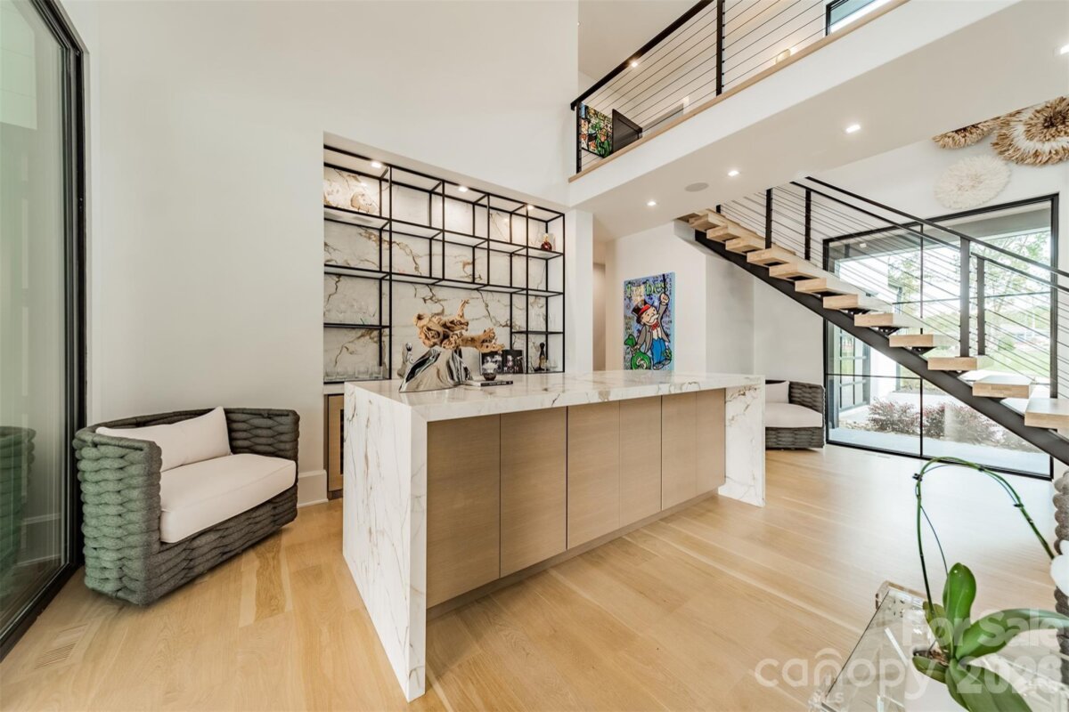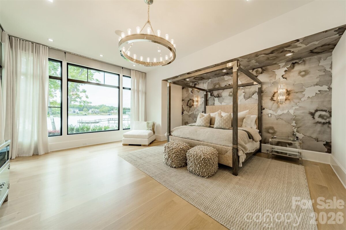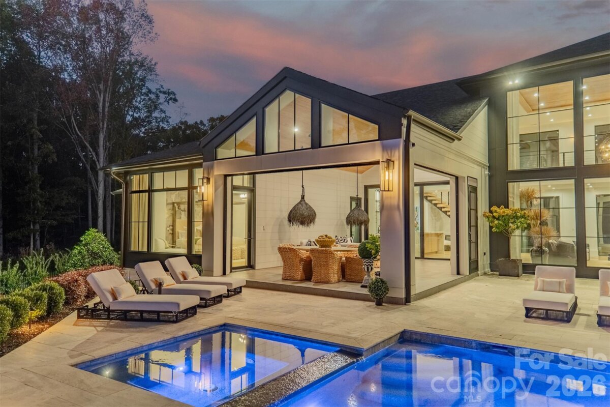 Step into a world of sophistication in this stunning contemporary home. This architectural marvel, custom-built by Courtland Homebuilders, boasts soaring ceilings & walls of windows flooding the space with natural light. Unparalleled lighting collection, world-curated with the finest craftsmanship. The open-plan main living space is a state-of-the-art entertainment area that seamlessly connects to a travertine patio and pool deck with a saltwater pool and outdoor kitchen, all overlooking Lake Norman. Experience year-round comfort in the remarkable four-seasons room, with versatile, remote-controlled panels. Luxurious top-of-the-line materials used throughout such as porcelain counters with waterfall edges and Phillip Jeffries wallpaper. Primary and guest suites on the main level. Upper level with loft, spacious rooms, office/6th bedroom, and lounge area with bar. 2 heated/cooled show garages, a beach, fire pit, and a pier with boat slip. This property redefines luxury lakeside living!