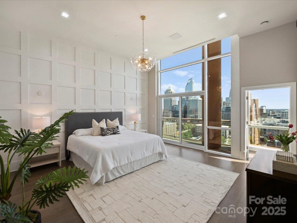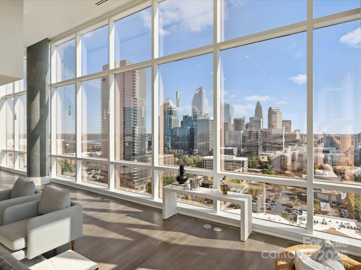 Perched on the 23rd floor, this Arlington Avenue residence showcases breathtaking skyline views and modern sophistication at every turn. With soaring 16-foot ceilings and floor-to-ceiling glass, the home has tons of natural light, creating an open, airy atmosphere perfect for relaxing and entertaining alike. Step out onto your private balcony or take in the incredible views from any of the elegant living areas. This move-in ready condo has been meticulously updated with refinished hardwood floors, fresh paint throughout, new cabinetry, new appliances, and designer lighting. A cutting-edge Savant system offers seamless control of AV, lighting, and HVAC—bringing both comfort and convenience to your fingertips. Residents enjoy the peace of mind of 24-hour secured living with over 50 digital cameras and card access, plus access to resort-style amenities including a rooftop pool, expansive terrace overlooking downtown, and a full fitness center. Situated in the heart of the city, you’ll be just steps—or a trolley ride—away from the Panthers and Hornets arenas, award-winning restaurants, nightlife, and shopping. Plus, with easy access to I-277 and the airport, you’ll enjoy the ultimate in convenience and connectivity. Unit 2301 is where luxury, lifestyle, and location meet. Don’t miss this extraordinary opportunity to live above it all.