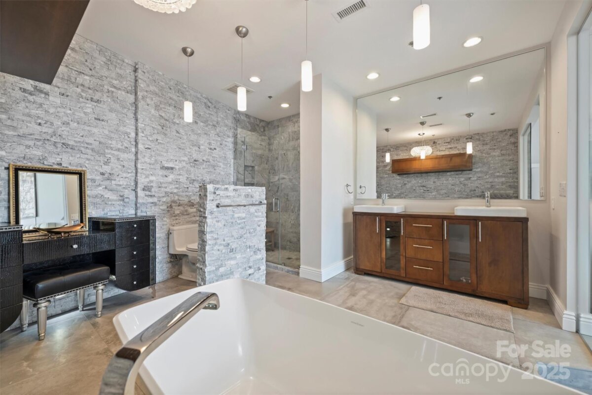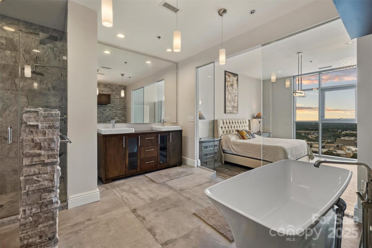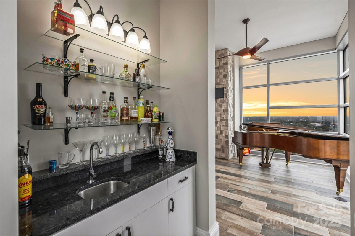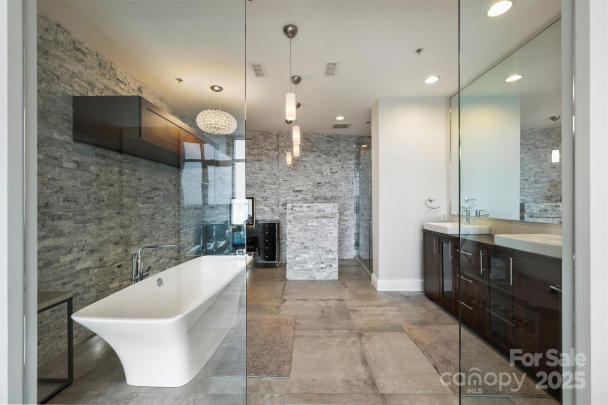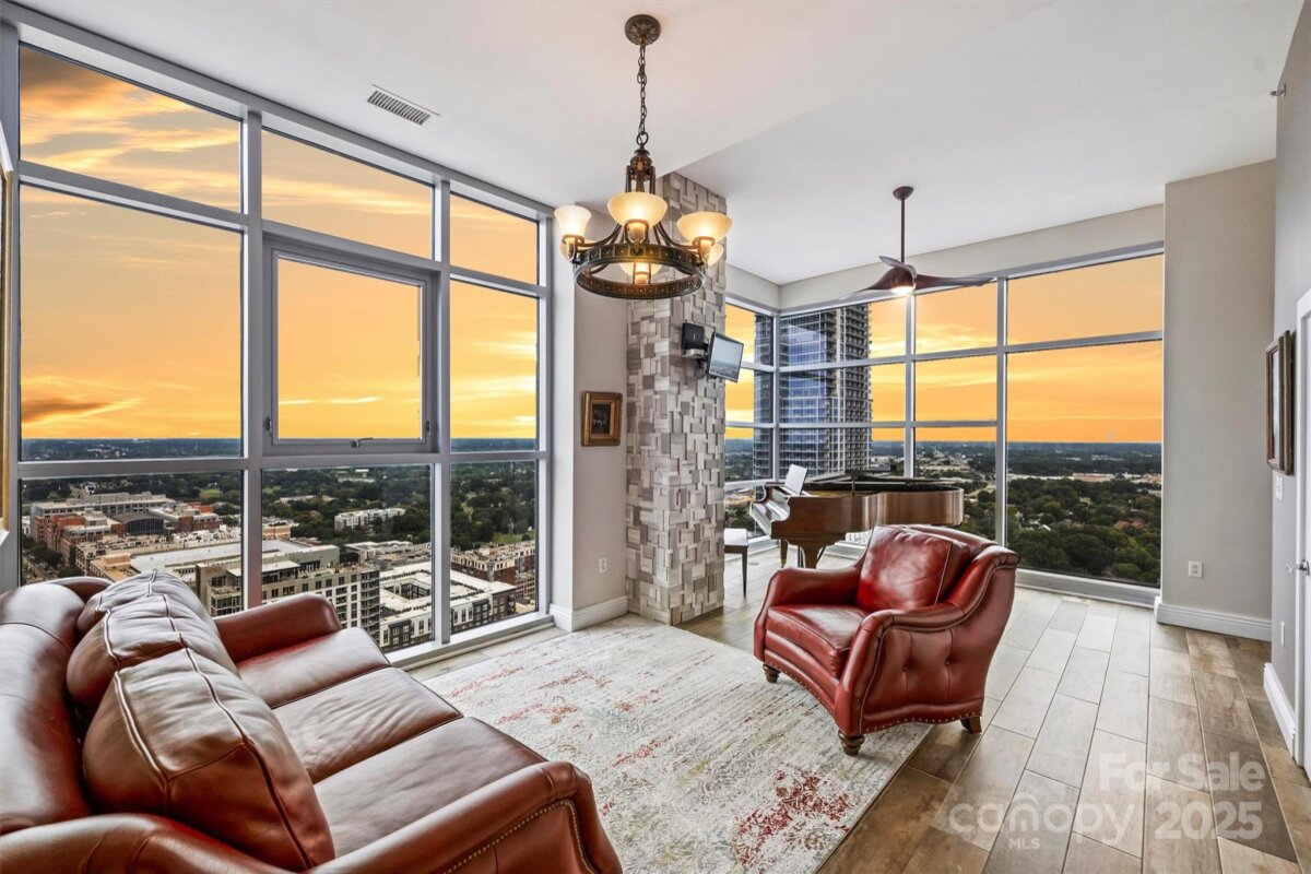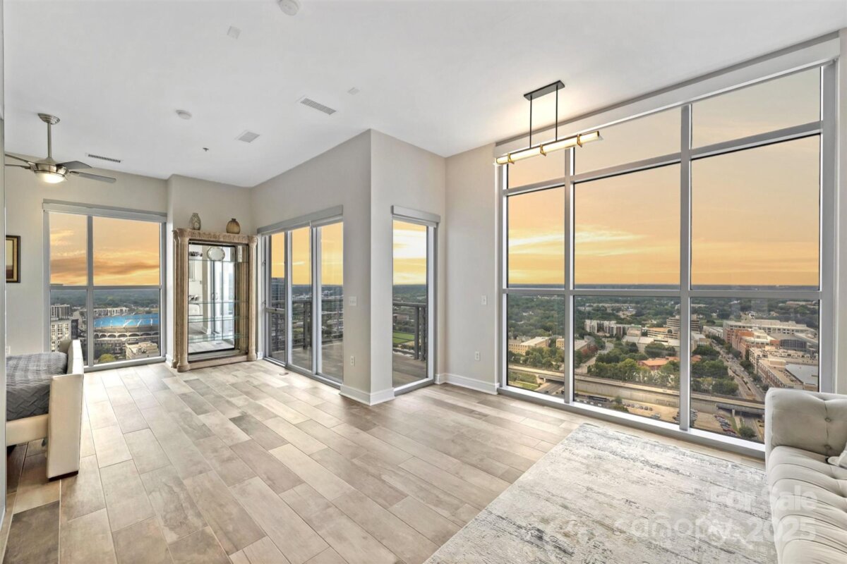 This exceptional 3-bedroom, 4-bath luxury condo offers an unparalleled blend of sophistication, comfort, and breathtaking views. Wrapped around three sides of the building, the residence showcases floor-to-ceiling windows that frame sweeping, unobstructed panoramas of the Charlotte skyline. Inside, the ambiance is classy, sophisticated, and modern, featuring soaring ceilings and a fully upgraded interior designed for elevated living. The chef’s kitchen is a showpiece in itself, with premium appliances, designer finishes, and an open layout ideal for both entertaining and everyday life. A versatile flex space provides endless possibilities—create a lounge, private office, or additional guest suite—perfectly complemented by an elegant wet bar for effortless hosting. Enjoy two private balconies where you can sip your morning coffee above the city or unwind as the skyline glows at night. With its 27th floor wraparound vantage point, natural light, and thoughtfully curated upgrades, this residence delivers a lifestyle of luxury and convenience. Located in the vibrant Uptown area, the condo is just steps away from the best the city has to offer—including premier dining, boutique shopping, professional sports venues, performing arts, and world-class theatre. And for added convenience, the home includes three dedicated parking spaces in the secure, gated parking garage. Here, urban living meets unmatched elegance.