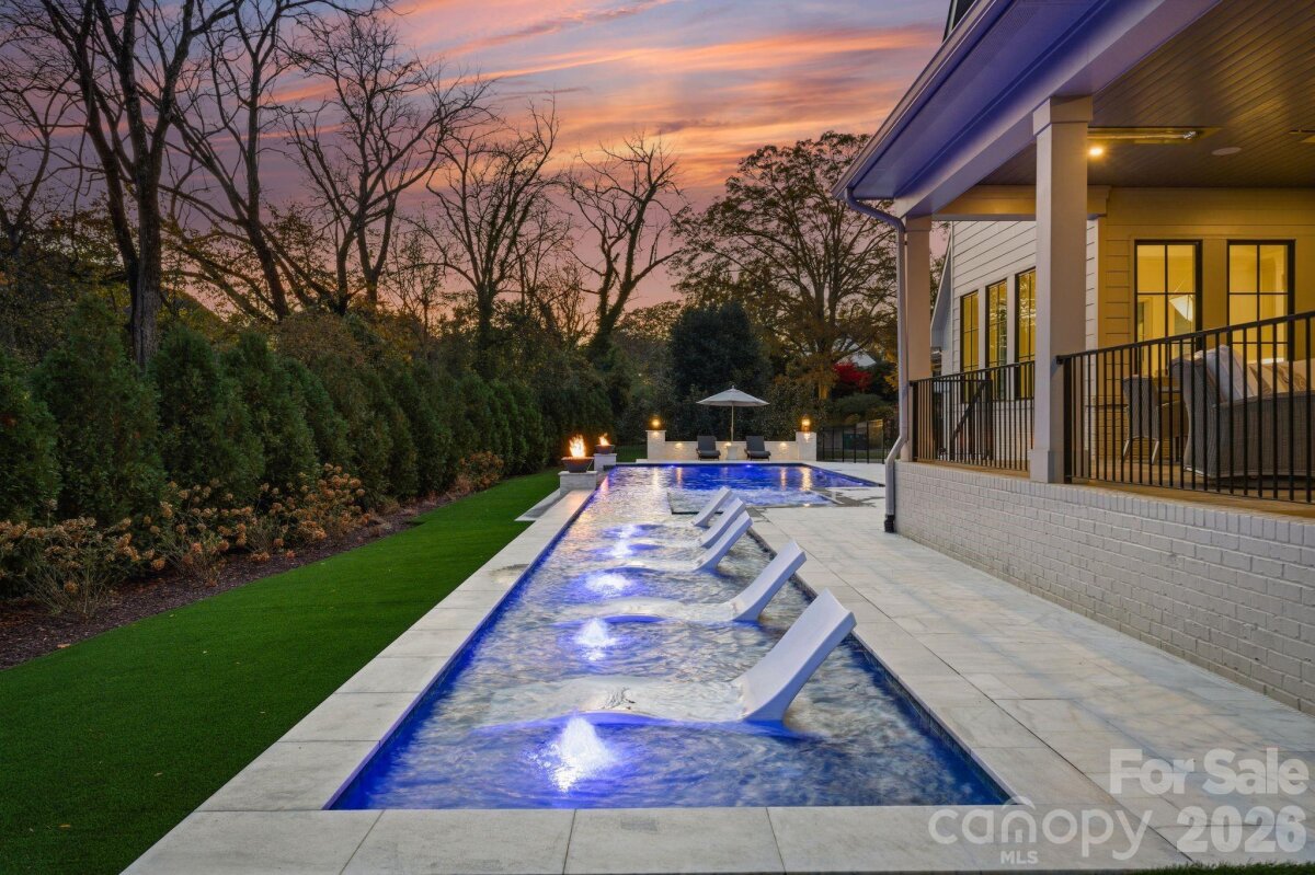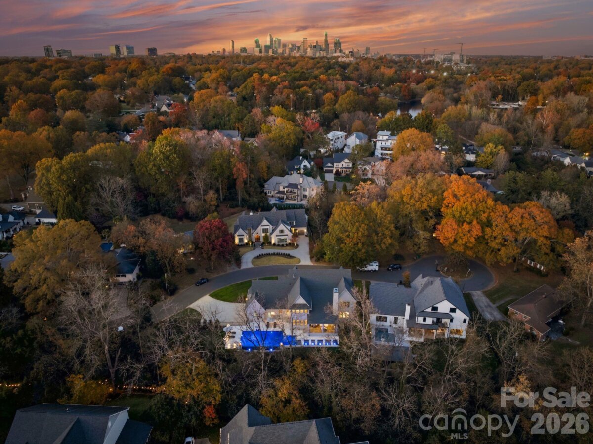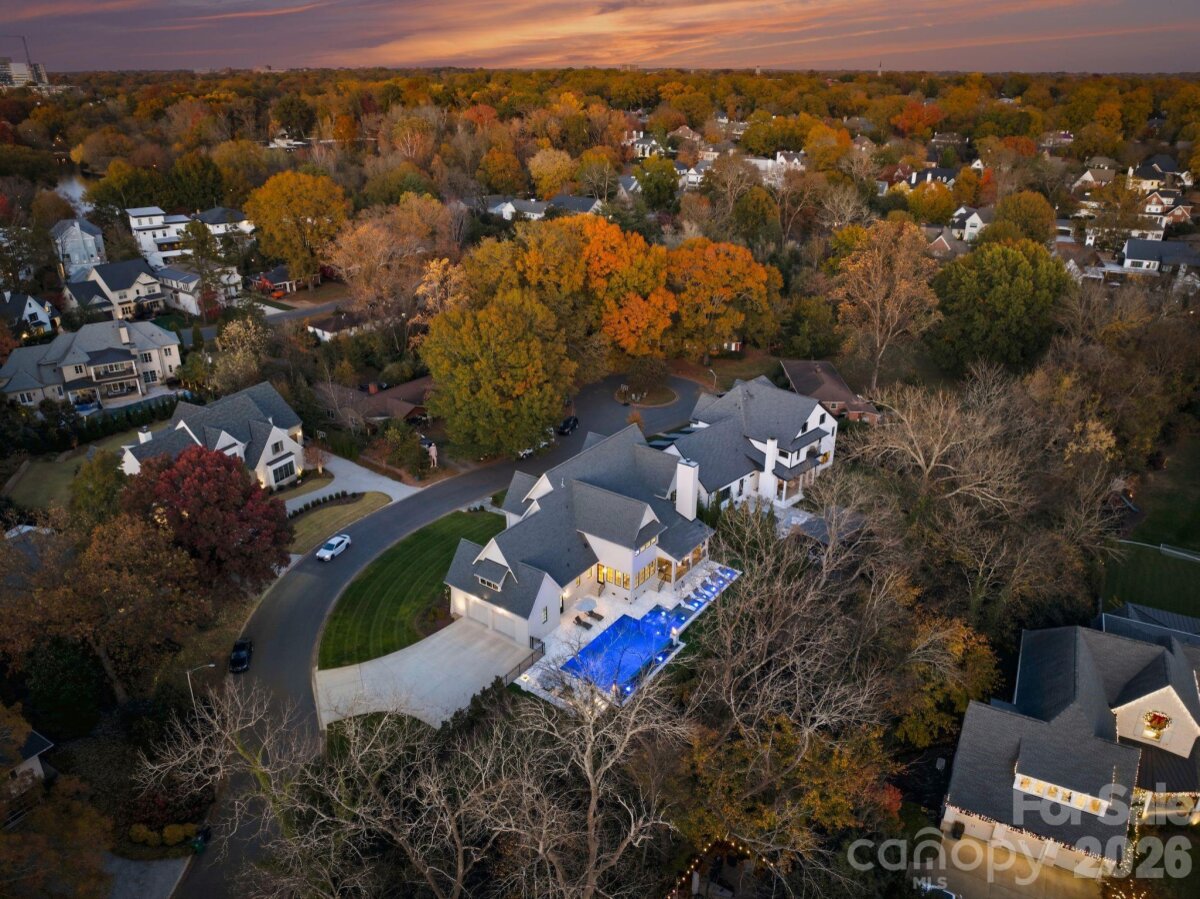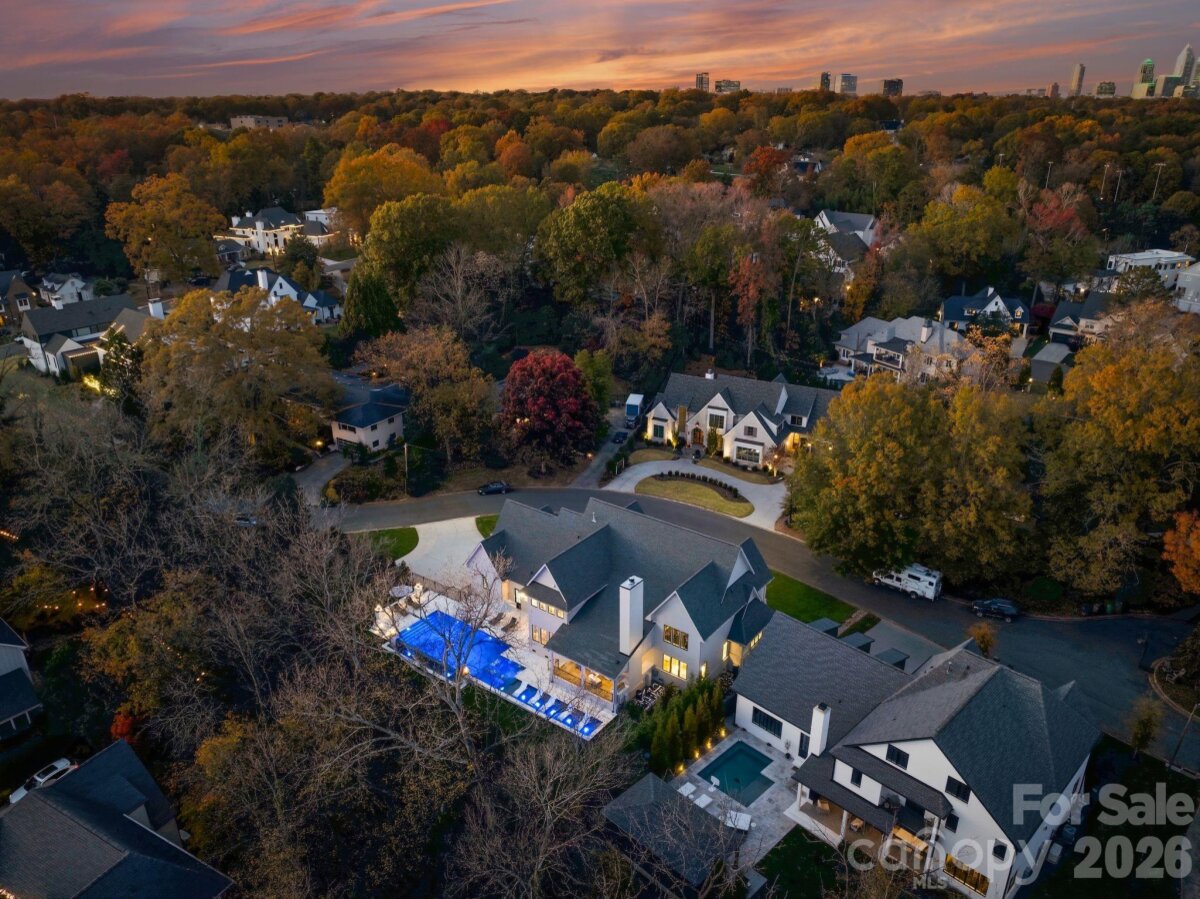 Welcome to an extraordinary modern estate, completed in 2023, in the heart of Myers Park, where refined architecture and modern elegance converge. A grand, light-filled interior unfolds through an expansive open floor plan, anchored by a main-level primary suite and private guest retreat, each designed with a sense of quiet luxury. The primary sanctuary is complemented by a spa-caliber bath, featuring a sculptural soaking tub, marble walk-in shower, dual vanities, and an impeccably designed bespoke dressing room. The culinary space is both striking and functional, centered around a statement white oak island with luminous quartz surfaces and appointed with a suite of professional-grade appliances by Thermador, Wolf, and Sub-Zero. White oak floors extend throughout, while soaring vaulted and coffered ceilings, tailored millwork, and curated designer lighting create a layered and sophisticated aesthetic. Walls of glass invite abundant natural light, enhancing the home’s seamless flow and sense of scale. Upstairs, four beautifully appointed bedrooms are complemented by a private study, media lounge, and a flexible fitness or wellness space. Designed for elevated living and effortless entertaining, the covered outdoor terrace features a built in grill, beverage refrigerator, ice maker, fireplace, and integrated heating for year-round enjoyment. The grounds have been transformed with animal friendly turf, a 90-foot in-ground heated saltwater, Pebble Tec, Infinity edge swimming pool, surrounded by sandblasted textured marble and exquisite fire bowls adding a touch of elegance. Home equipped with a WHOLE HOUSE GENERATOR and fully integrated with a Control4 smart home system, offering a seamless and intuitive living experience. Welcome Home! Please see attached features for complete list of extraordinary details!