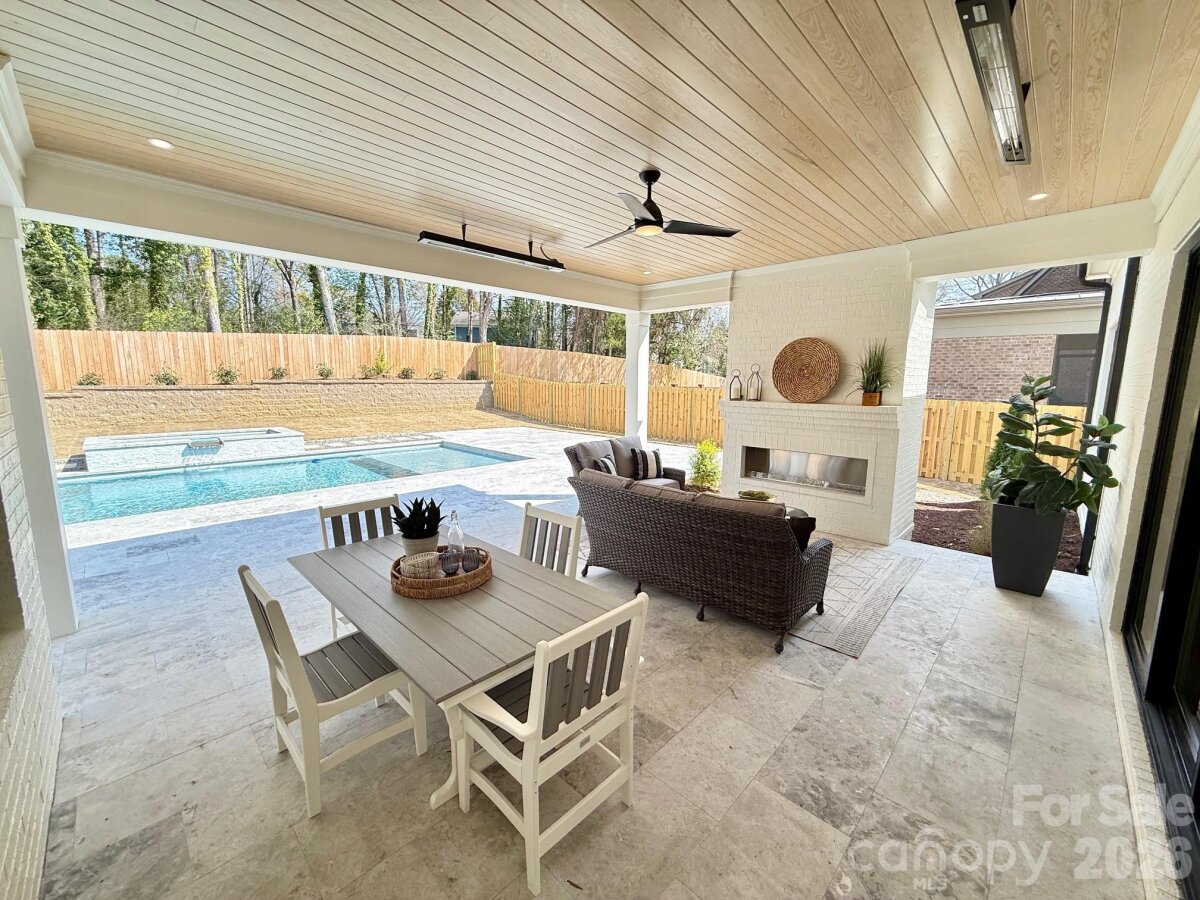 Beautifully built custom home tucked away in the established Mammoth Oaks community overlooking community lake. This executive property sits on a half acre with a swimming pool/spa and is perfect for entertaining. The open floor plan has 10'ceilings on the main and 9'ceilings upstairs. The custom chef's kitchen includes a large island, custom cabinetry, SS appliances including a 48" Wolf gas range and a walk-in hidden pantry/scullery. The dining area is perfect for every day use as well as more formal dining. The primary bedroom is on the 1st floor with view of pool and primary bath with heated tile flooring. Upstairs you will find 4 additional bedrooms, a flex room, large landing & 2 bonus room spaces. The home is Energy Star Certified, has maintenance free Low-e insulated Pella aluminum clad windows, tankless water heater w/recirculation loop, multi-zoned HVAC w/ gas furnace, 7.5"white oak engineered hardwood floors throughout the entire home. Home also has 3 car garage, custom drop zone with lockers and laundry room. Designer tile in laundry and all bathrooms. Mammoth Oaks is located in south Charlotte convenient to Uptown, South Park and Strawberry Hill shopping and restaurants. Also conveniently located to Providence Day, Country Day schools.