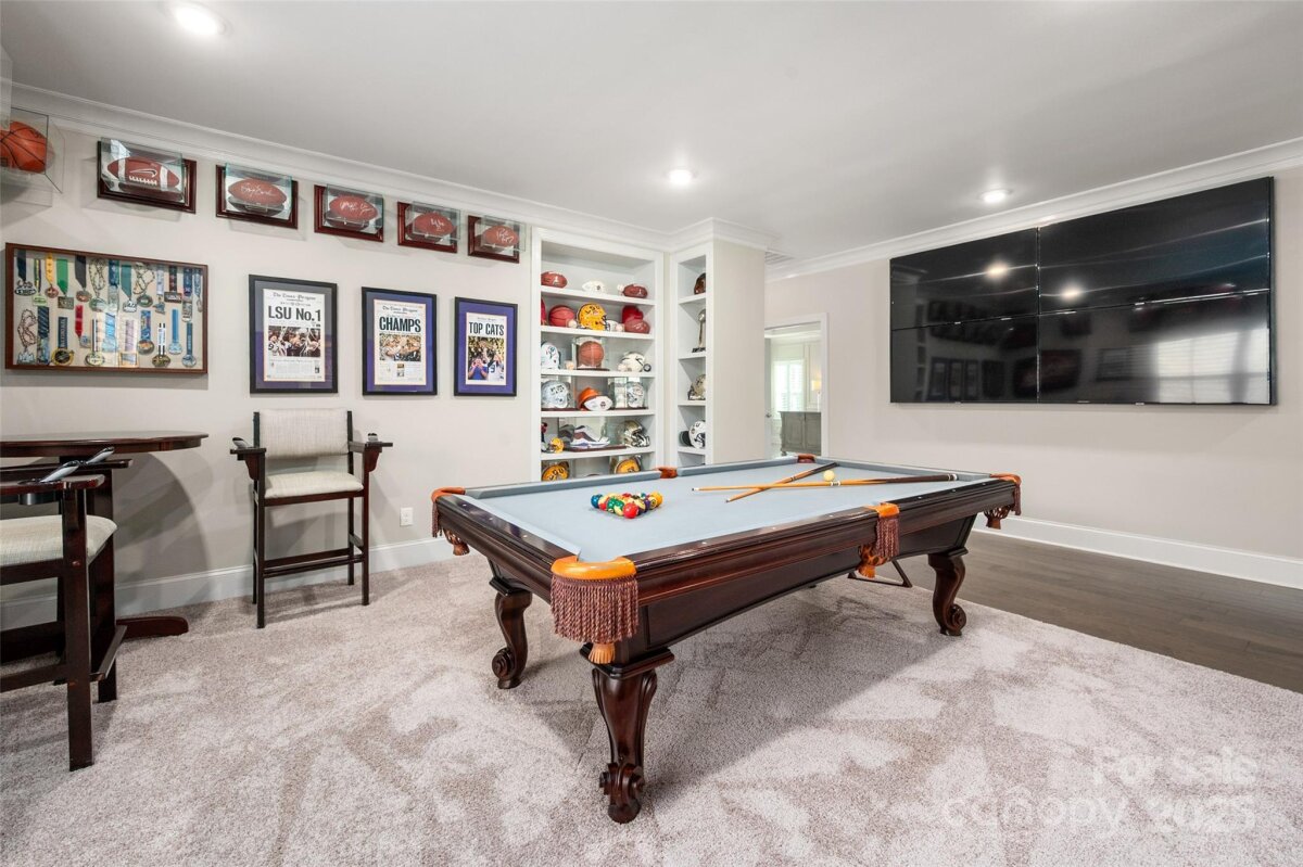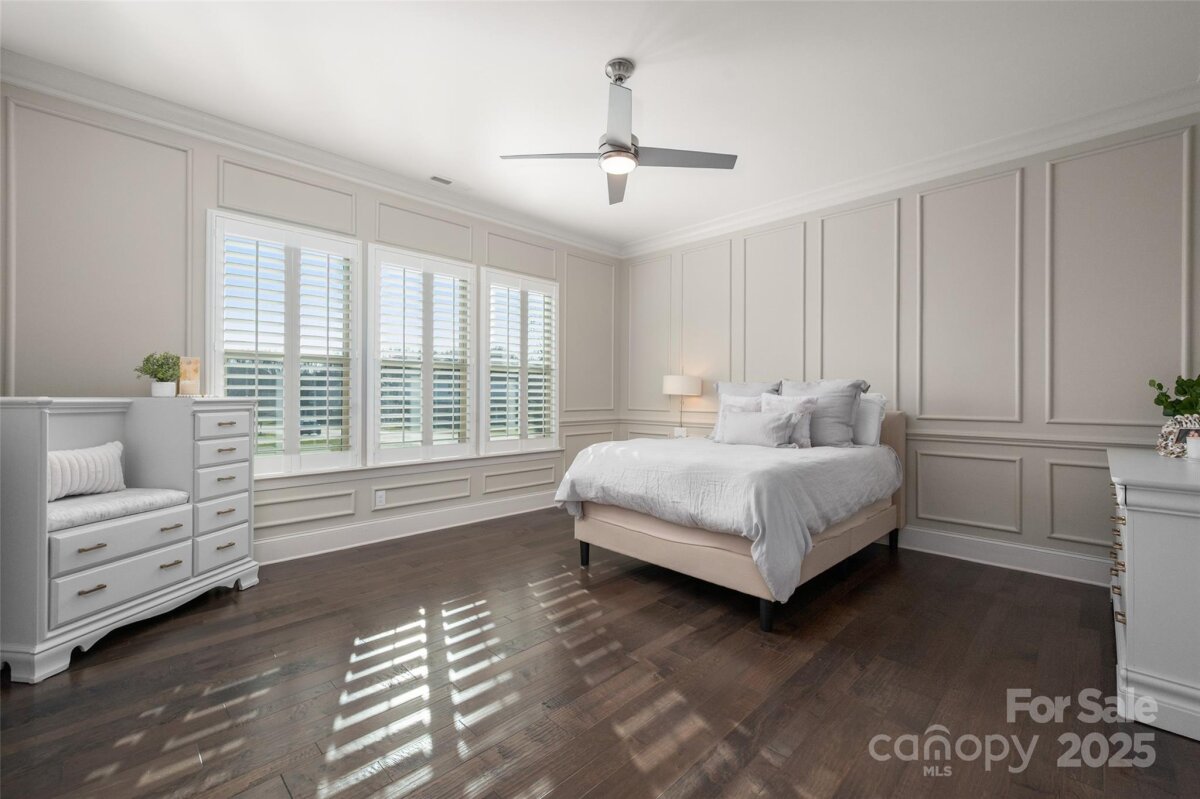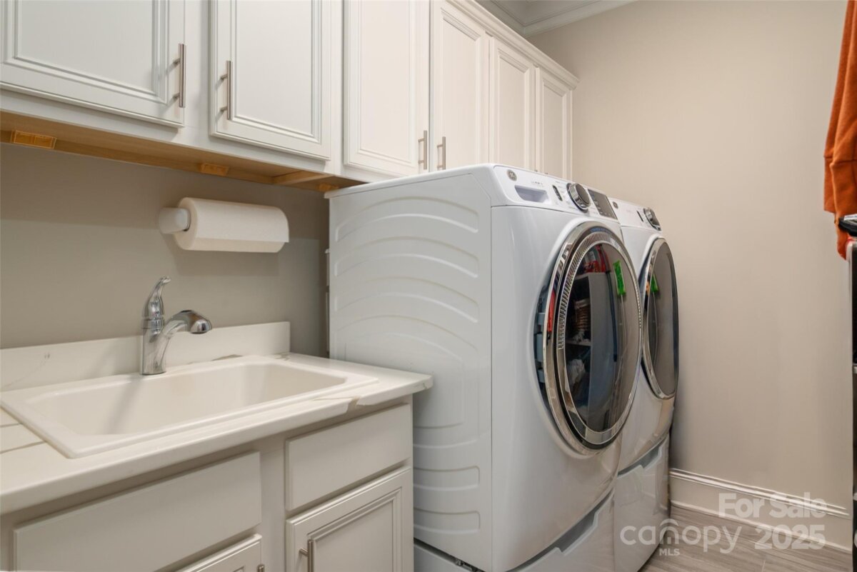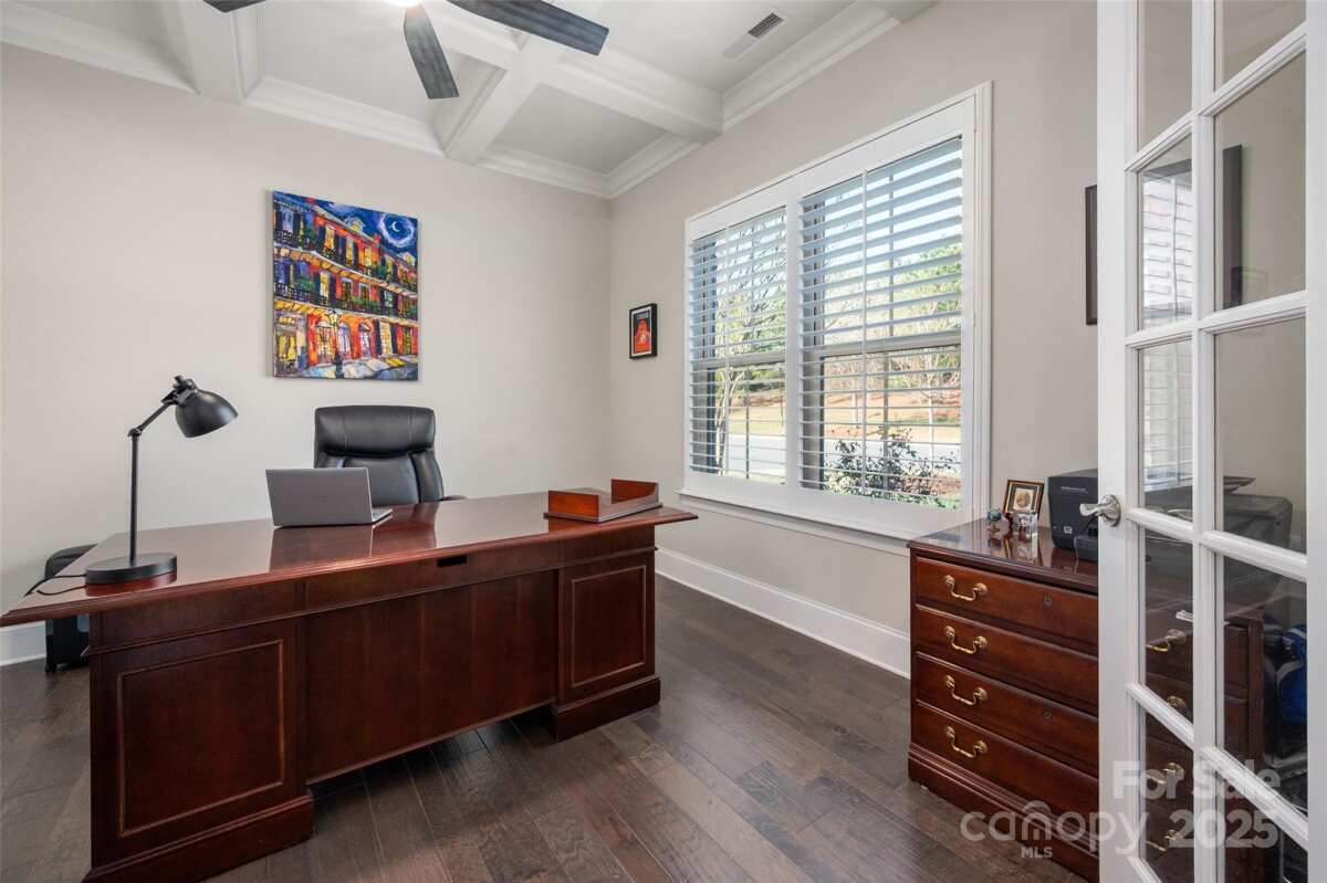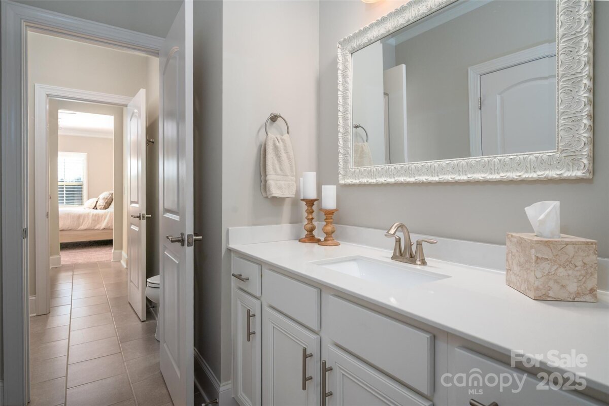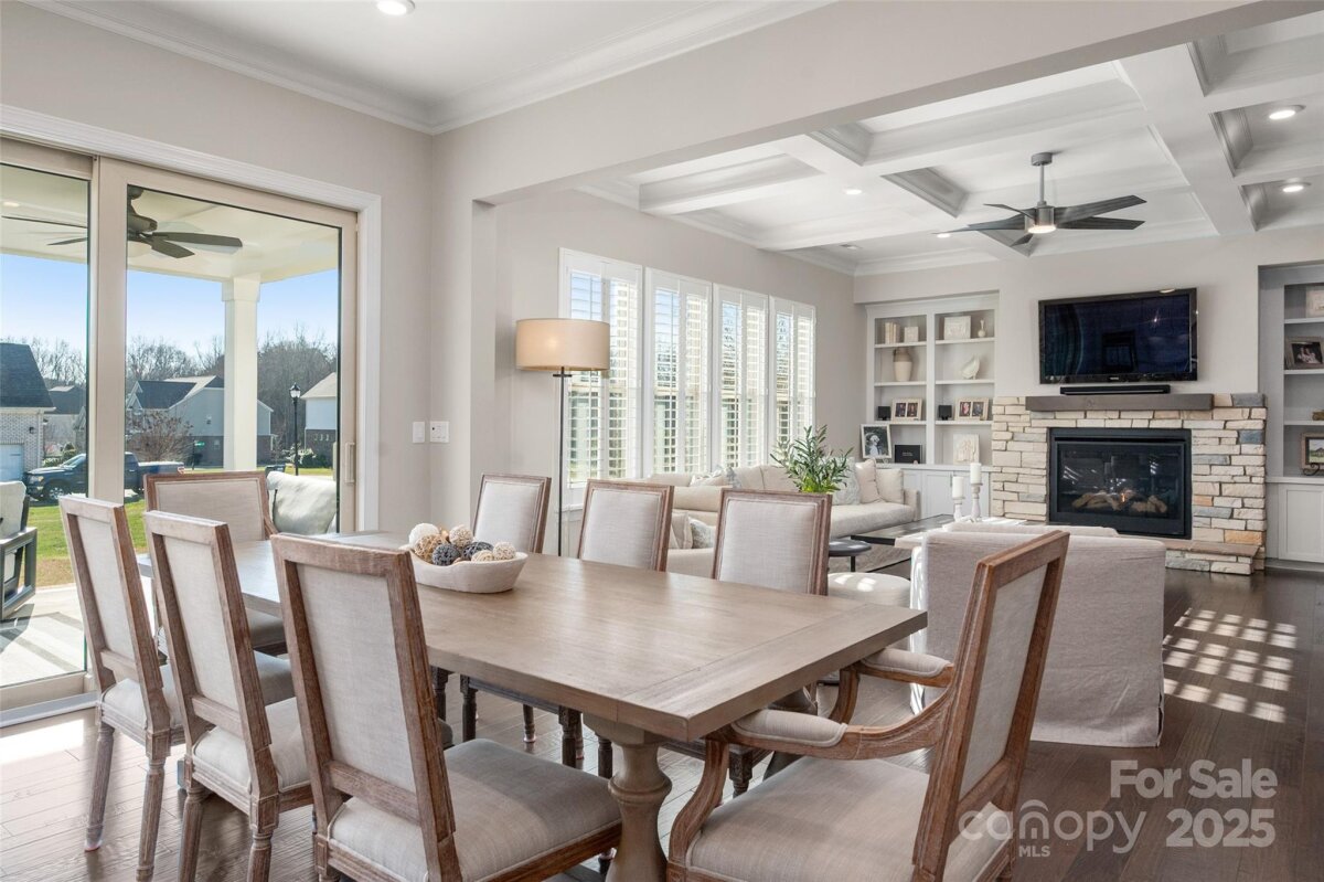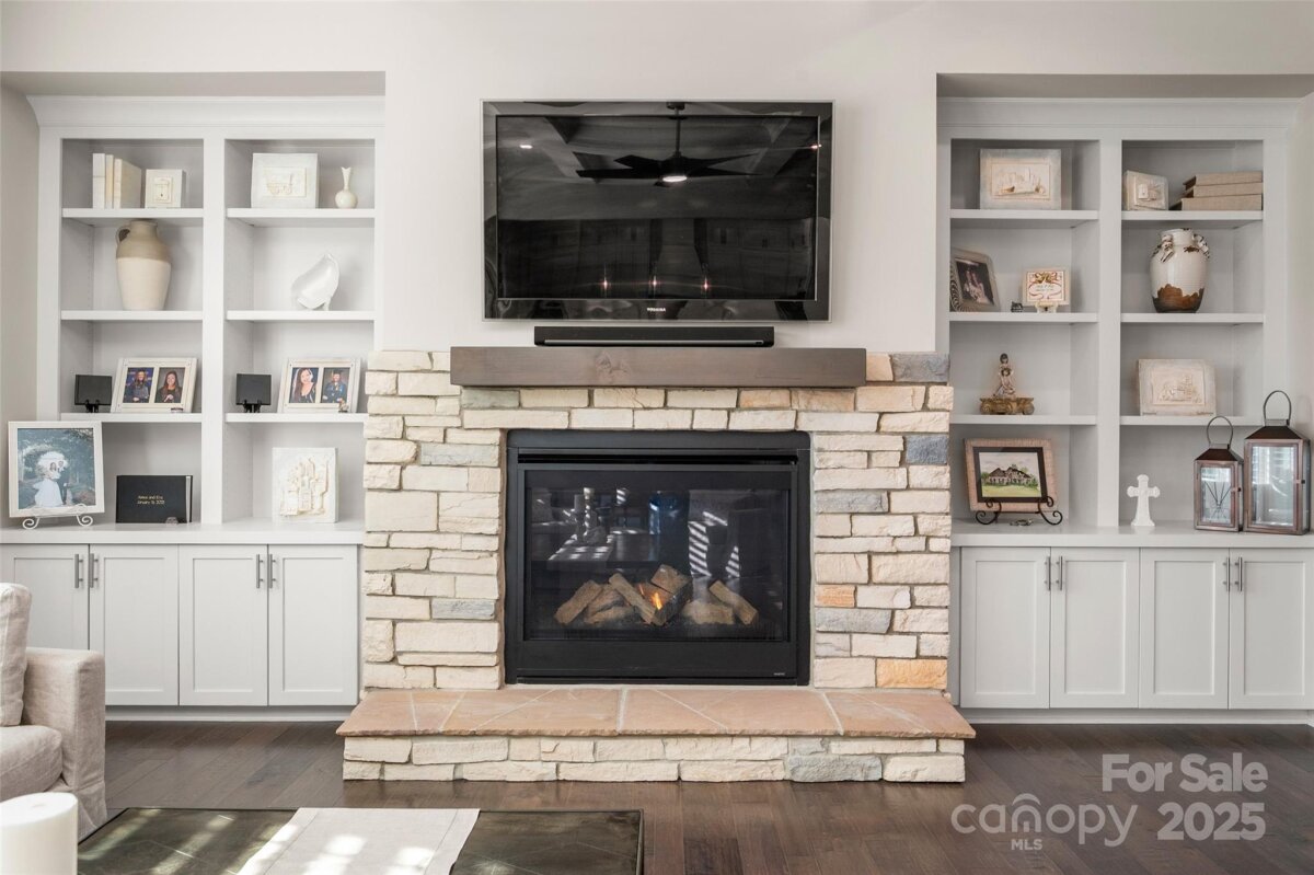Welcome home to this luxury 5-bedroom, 4.5-bath residence located in the gated community of Highclere, one of Marvin’s premier neighborhoods. Offering nearly 5,000 square feet of refined living space, a 3-car side-load garage, and abundance of custom details, this home blends elegance with exceptional functionality. A grand foyer welcomes you with soaring two-story ceilings, setting the tone for the sophistication found throughout. The main level features 10-foot ceilings, while the upper level offers 9-foot ceilings, all accented with crown molding and custom trim details. The white chef’s kitchen boasts stacked cabinetry, a gas cooktop with wall oven, and an oversized center island ideal for additional seating. Overlooking the dining area and stunning family room, the kitchen creates an exceptional flow for entertaining. A formal dining room connects to the kitchen through a beautifully appointed butler’s pantry, complete with a wine refrigerator and ice maker. The family room showcases a coffered ceiling, custom built-ins flanking a striking stone fireplace, and abundant natural light. A second primary suite on the main level offers a private ensuite bath—ideal for guests or multigenerational living. A home office tucked just off the foyer provides a quiet and functional workspace. Upstairs, the primary suite is a true retreat, featuring an oversized bedroom with a tray ceiling, his-and-hers walk-in closets, and a spa-like ensuite bath with a spacious walk-in shower and freestanding soaking tub. A highly sought-after bonus room offers flexible additional living space, perfect for a media room, playroom, or lounge. A private guest suite includes its own bath and large closet, while the Jack-and-Jill bedrooms offer generous room sizes. Hardwood floors extend throughout the main level, staircase, upper hallway, and primary suite, enhancing continuity and warmth. Every bedroom features walk-in custom closets. Bring the outdoors in with a 9-foot telescoping door that opens to a covered patio with a built-in outdoor grilling area, overlooking a nearly half-acre of lush, level yard—providing endless opportunities to create your ideal outdoor oasis.