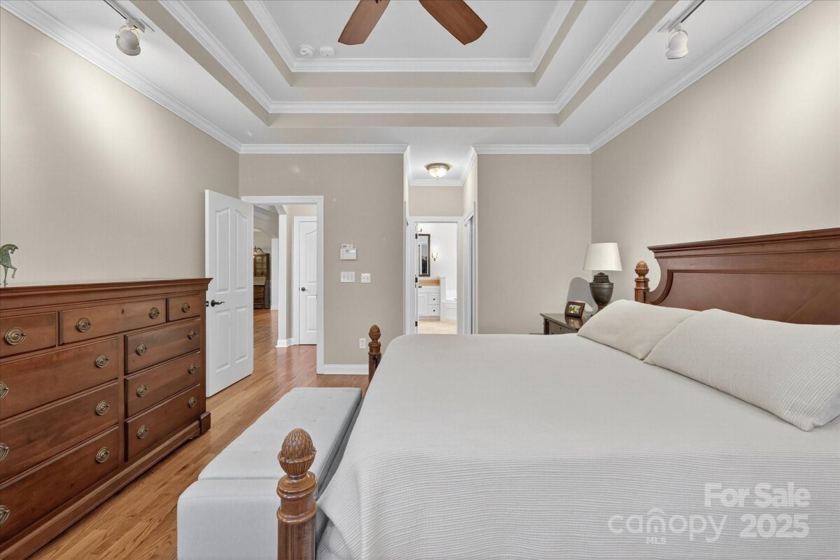 Exceptionally Beautiful Well Maintained Spacious Home in coveted Canterfield Creek offering Wonderful Living Space on Private Expansive Lot. This home offers Flexibility for Family and Guest with a Primary Suite on the Main Level, 3 Bedrooms and Bonus on Upper Level. Work from Home in Gorgeous Custom Mahogany Paneled Office. Entertain in Large Dining Room. 2 Story Great Room provides lots of Natural Light & Gas Fireplace. Kitchen with Stainless Appliances, Large Island, Large Pantry, White Cabinets with Pull-Outs, and Breakfast Area that Opens to Back Deck and Great Room. Primary Bed Room Suite on Main Level with Separate Walk-In Closets, Hard Wood Floors, Tray Ceiling, Ceiling Fan, Bath with Separate Vanities, Water Closet, Separate Shower and Garden Tub. Conveniently Located Laundry Room and Half Bath on Main Level. 2 Car Attached Side Load Garage. Updated Windows. Stucco Trim at Front Door Only. Expansive Deck Overlooks Fenced Private Back Yard with Irrigation and Mature Landscape. Must See Detached space provides inviting flexible open living area. Interior Conversion of Detached Space to Heated Living Area from Finished Garage (1236sf) Was Not Permitted.