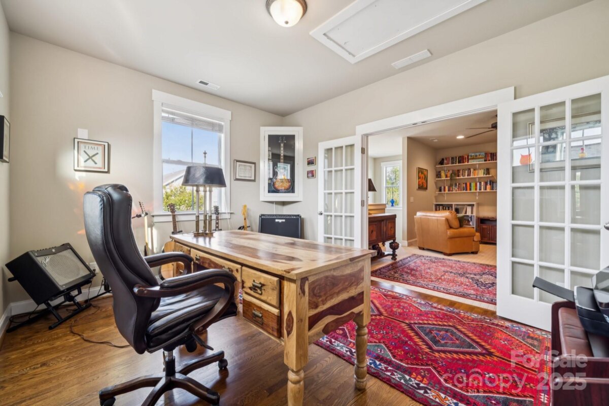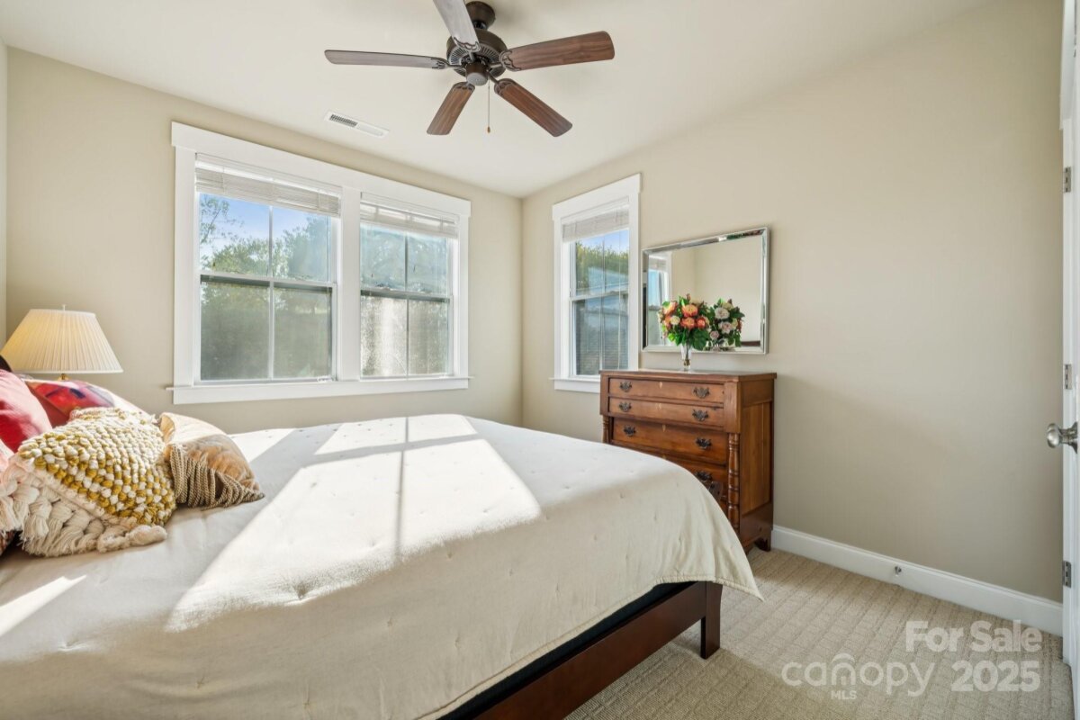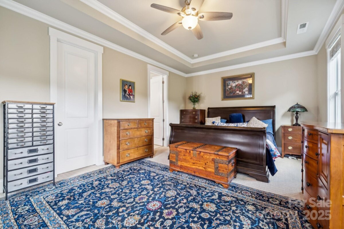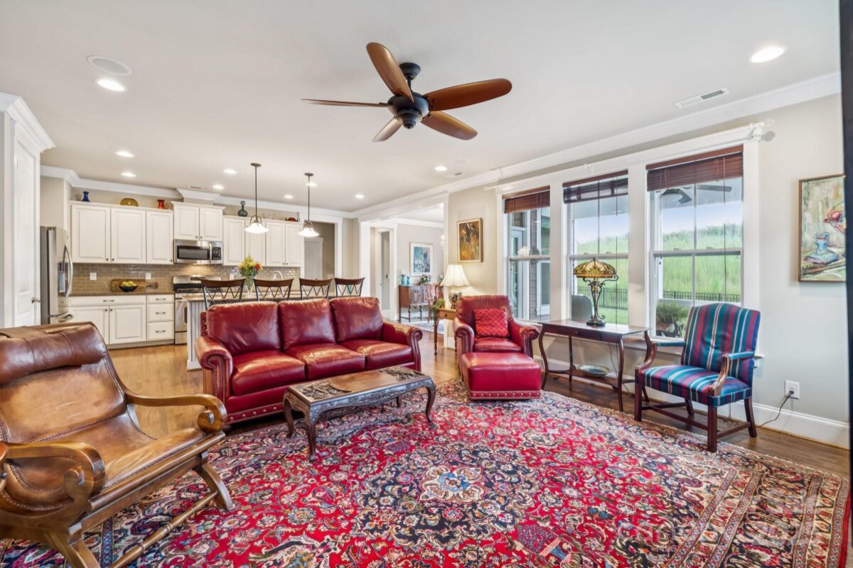 Modern farmhouse charm meets everyday luxury in Riverwalk! Welcome to 516 Jones Mill Lane, a beautifully crafted Evans Coghill-built modern farmhouse tucked away in a peaceful cul-de-sac in the sought-after Riverwalk community of Rock Hill. This 4-bedroom, 2.5-bath home offers 2,665 square feet of thoughtfully designed living space, blending timeless style with contemporary comfort. Step inside to discover site-finished hardwood floors, 9' ceilings, and elegant crown molding throughout the first floor. The open-concept layout centers around a gourmet kitchen featuring granite countertops, large island, stainless steel appliances, a tile backsplash—perfect for entertaining or cozy nights in. The first-floor primary suite is a true retreat, complete with a spacious walk-in closet with custom shelving and a huge luxurious walk-in shower. Upstairs, a versatile loft provides additional living space, ideal for a home office, playroom, or media area. All bedrooms feature custom closet systems, maximizing storage and organization. Enjoy outdoor living year-round with TREX decking on both the extra-large breezy covered front porch and the covered back porch, overlooking a private fenced yard with patio & fire pit that backs up to a serene green space. The irrigation system and 2025 tankless water heater add convenience and efficiency. Located just around the corner to shops, restaurants, and the scenic Riverwalk trail, this home also offers access to community amenities including an outdoor pool with lazy river, clubhouse, park, and BMX track—all within walking distance. Enjoy vibrant living in golf-cart friendly Riverwalk and in one of the best areas of the community! Come see why this home is the perfect place to write your next chapter.