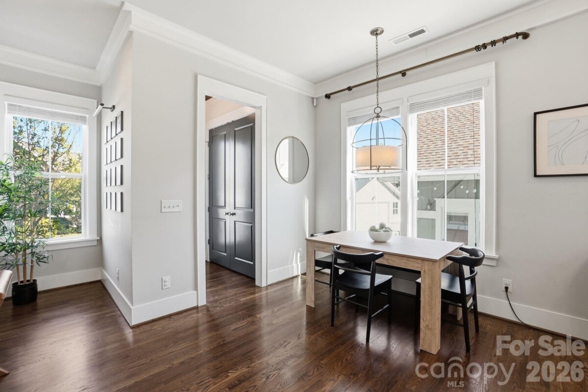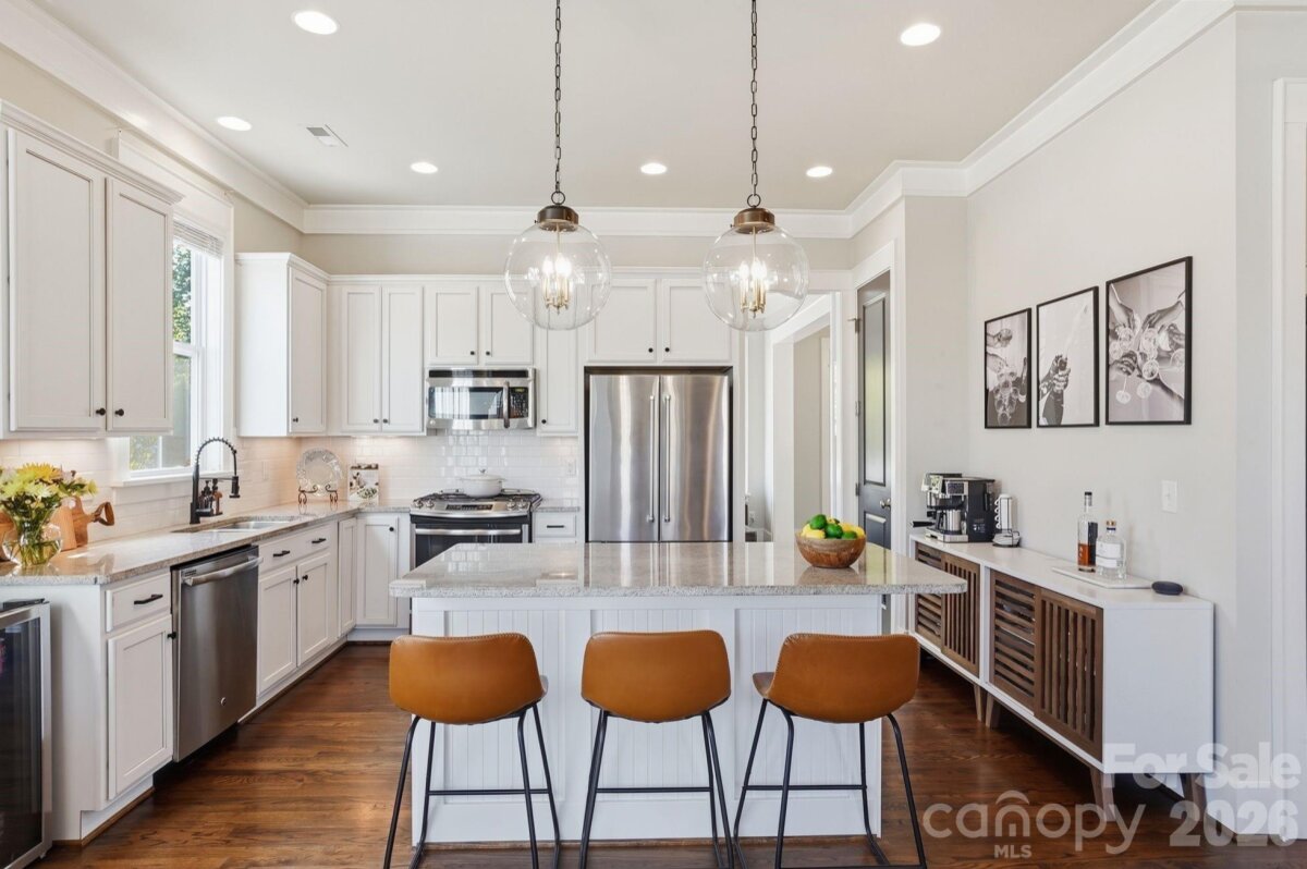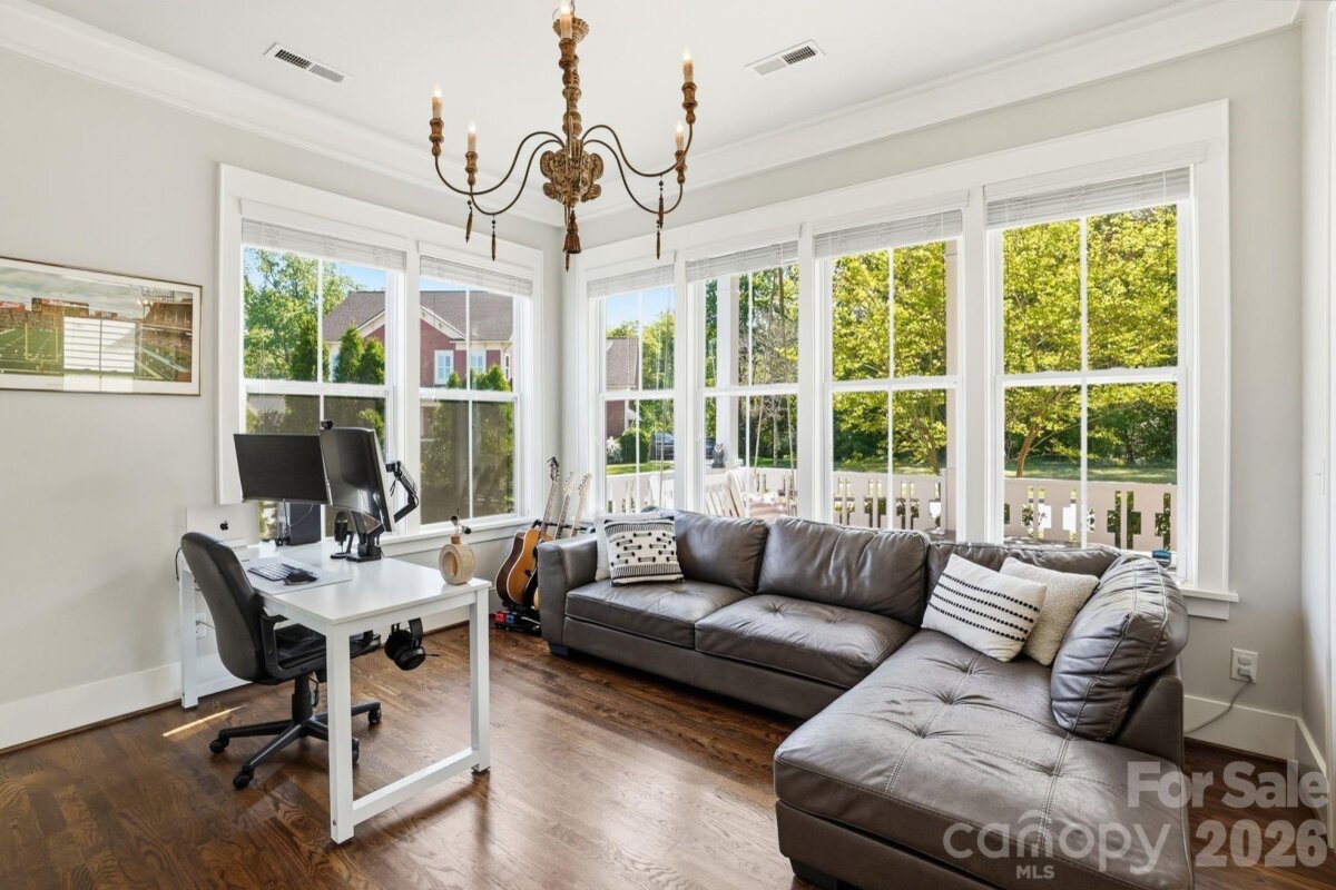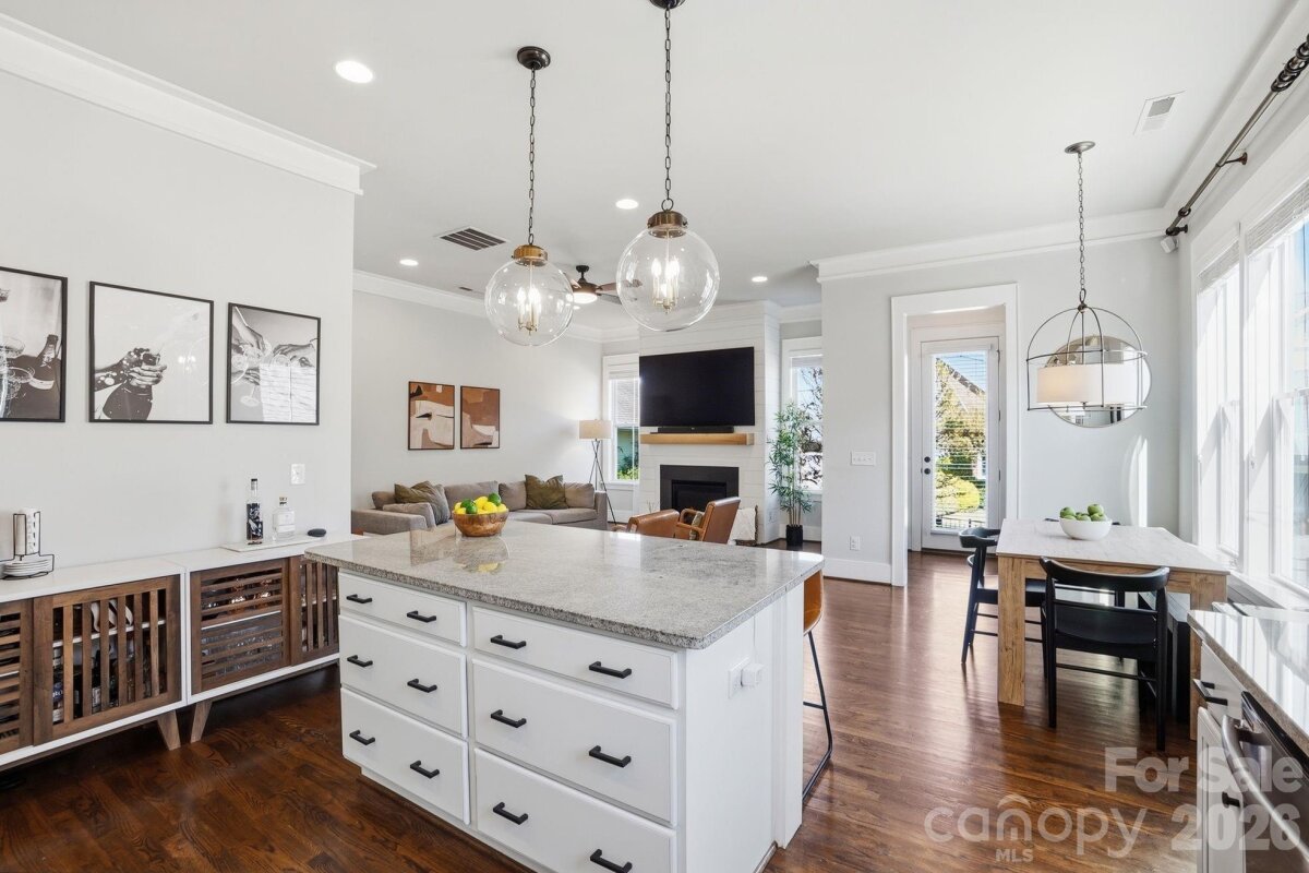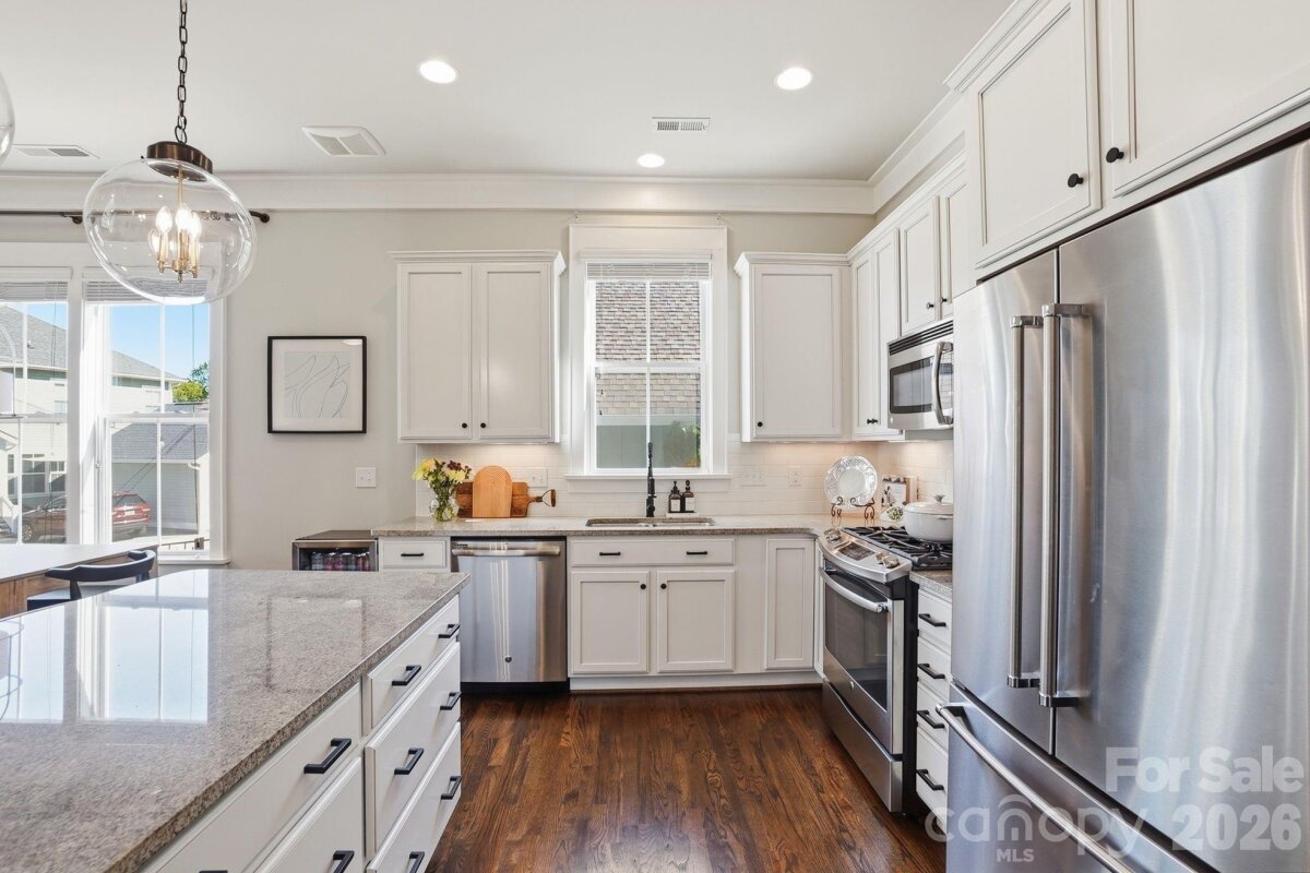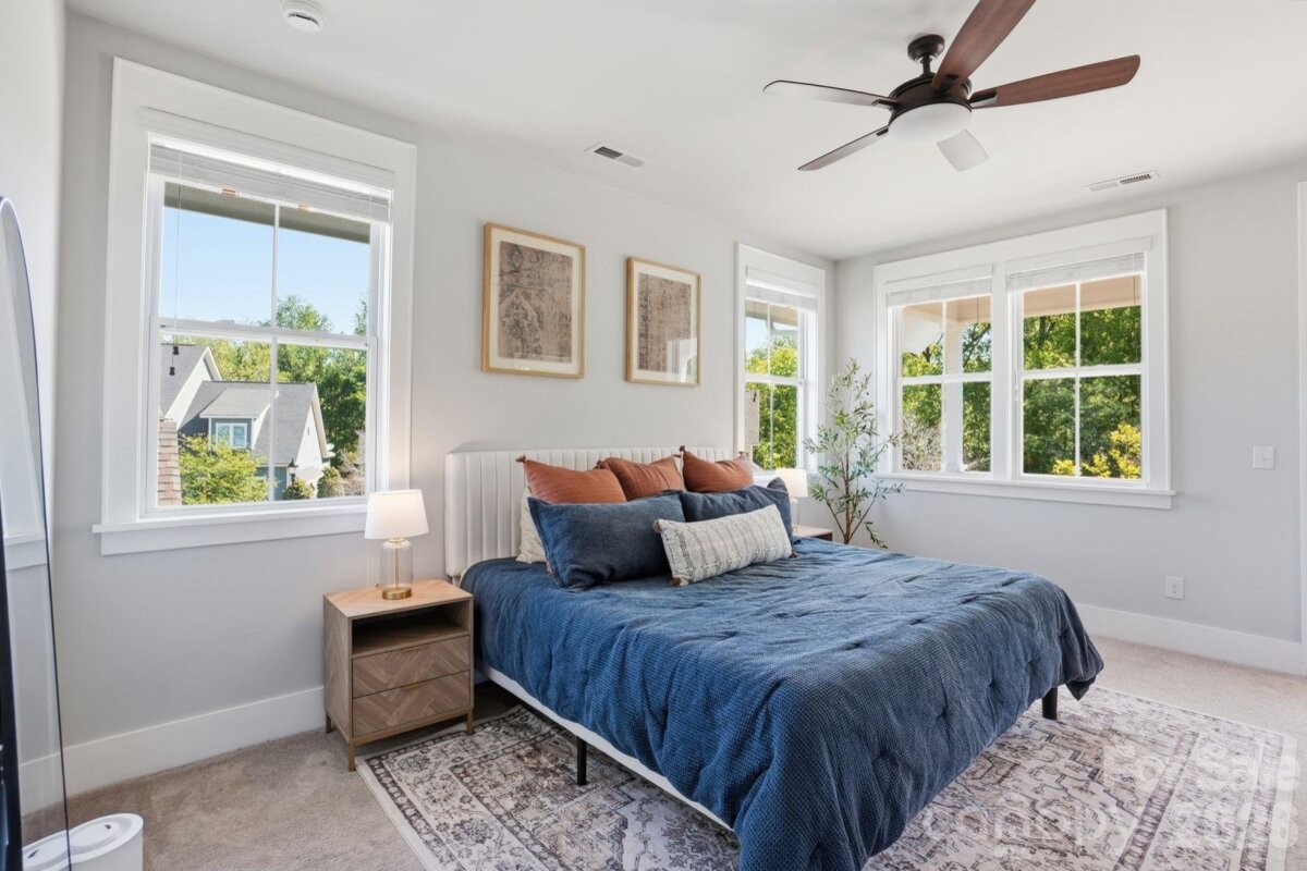 An exceptional opportunity awaits with this stunning Charleston-inspired Saussy Burbank home located in the BEST pocket of popular Riverwalk! Experience the pinnacle of craftsmanship, perfectly positioned on a prime, oversized corner lot directly across from serene community green space. Boasting massive curb appeal and fresh exterior paint (March 2026), this charming home welcomes you with double front balconies designed for morning coffee and evening beverages. Inside, the sophistication continues with site-finished hardwoods spanning the main floor, stairs, and landing, complemented by heavy crown moldings throughout. The heart of the home is a bright, open-concept kitchen featuring granite countertops, a tiled backsplash, upgraded cabinetry, pantry, and a spacious island/breakfast bar—all flowing seamlessly into a living area anchored by a cozy gas fireplace flanked by custom shiplap. Need a home office or formal dining? The main-floor flex space features gorgeous custom built-ins to suit your lifestyle. A renovated drop zone off rear-entry adds function and style. Retreat upstairs to the spacious primary suite, where a private second-story balcony overlooks the green space. The en-suite bath offers a garden tub, separate walk-in shower and dual vanities for a spa-like feel. Two additional bedrooms and full bath complete the upper level. Outdoor entertaining is a breeze in your fenced backyard and private paved courtyard with string lights & outdoor TV, all just steps away from the iconic Riverwalk trails, community fire pit and Catawba River. Vibrant & golf-cart friendly Riverwalk has access to incredible amenities including an outdoor community pool with lazy river, clubhouse, playground, sidewalks, scenic walking & bike trails, 10-ft. wide trail on the Catawba River, canoe & kayak launch points, velodrome, BMX Supercross track and athletic fields. Plus, you are just minutes away from the River District with dining, shopping and entertainment. Best yet, easy access to Highway 77 (via the new Palmetto Parkway), downtown Rock Hill, Fort Mill and Charlotte. This move-in ready home is an UNBEATABLE value in the community's BEST pocket! Start packing - your next chapter begins here.